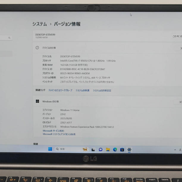 ハイスペックCore i7-8565Uと大容量SSD 1TB メモリ16GBで起動も早く、サクサク動作!
