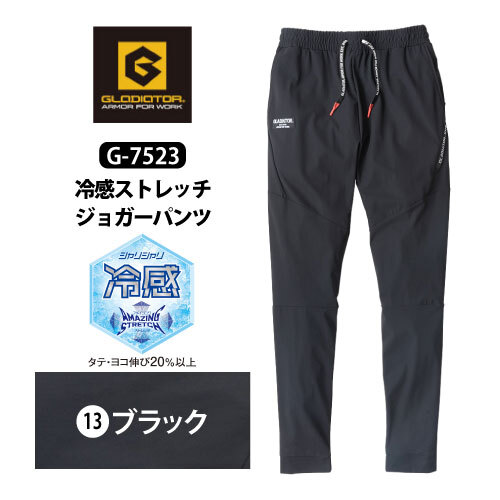 コーコス グラディエーター ジョガーパンツ【 G-7523 】■XLサイズ■ ブラック色 ストレッチ 接触冷感 UVカット ≪ネコポス発送≫