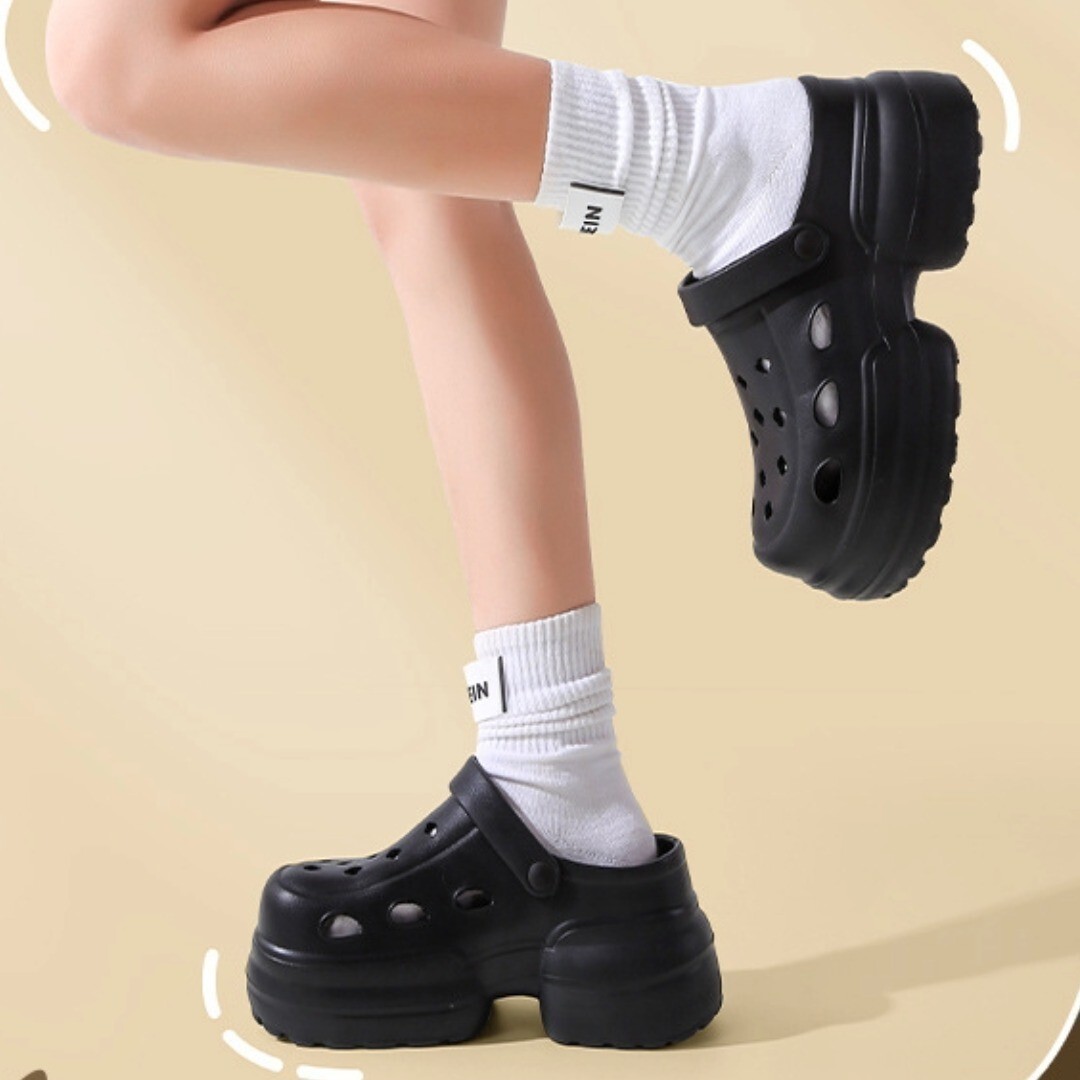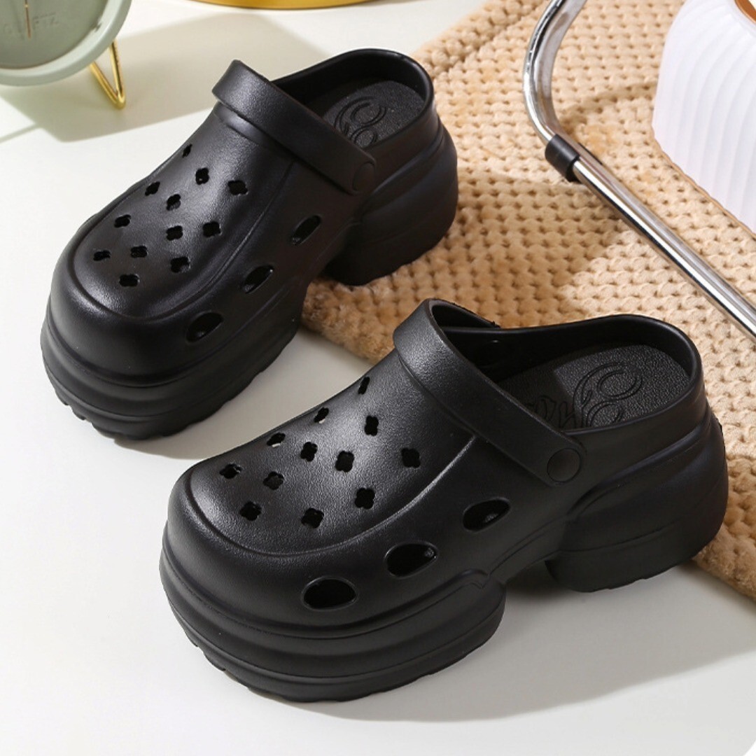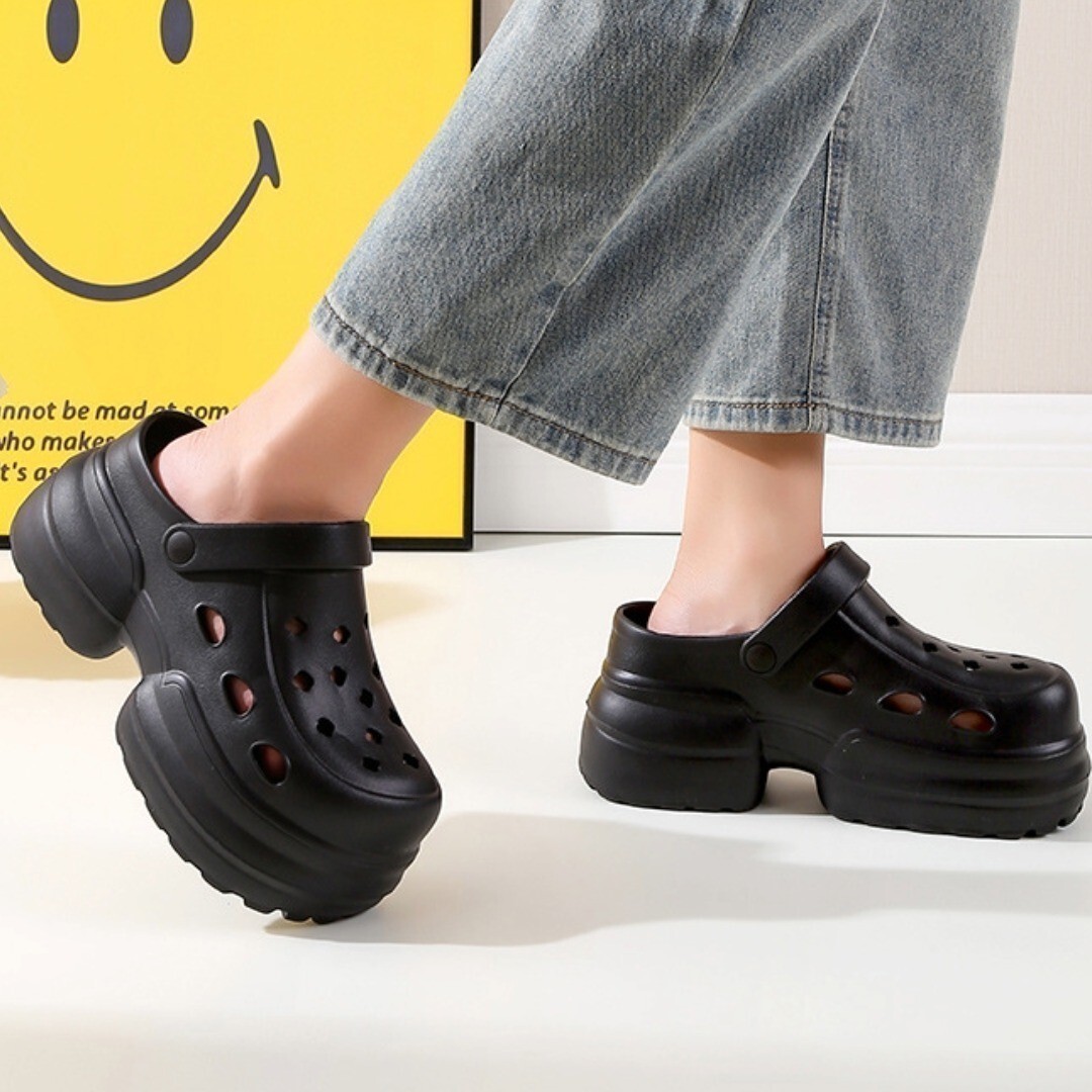 sa91 黒【24~24.5cm】厚底8cm 身長アップ 洗える EVA素材 クロッグス サボサンダル 黒 無地 地雷系 量産型 原宿系 靴 夏 サイズ展開 1