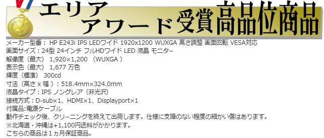 | 送 料 | ◆本州・四国・九州内各都府県は送料無料! 北海道/沖縄は送料1100円 ※ パーツ等小型商品は出荷から到着まで3~4日程度かかります。 ・PC・モニタ等の配送は、日本郵便 ゆうパック便でお届けいたします。 ・パーツ等はポスト投函便にてお送りします。 ■来訪での引取も可能です。 |