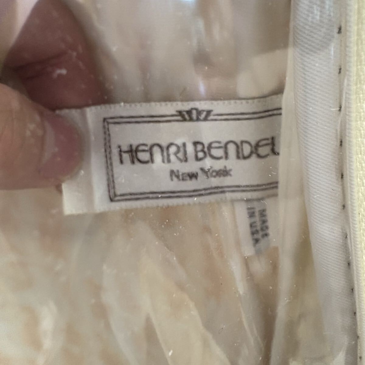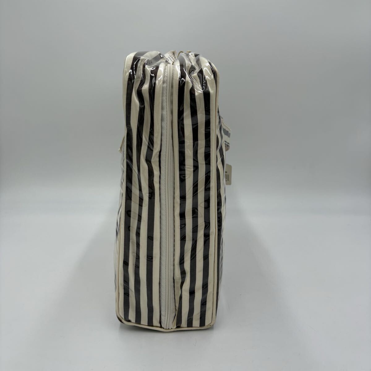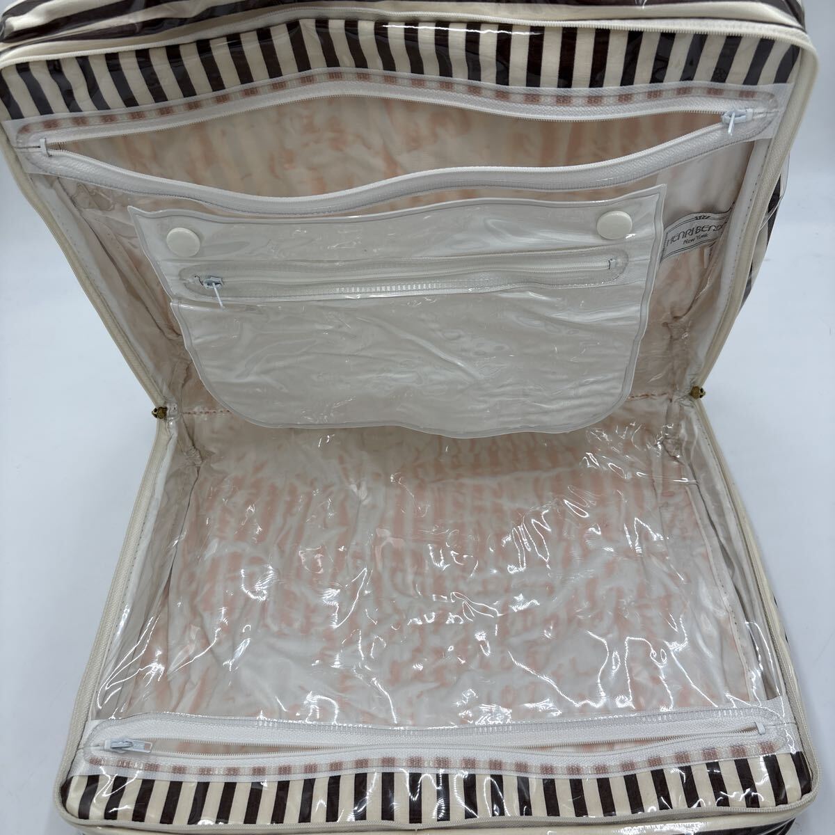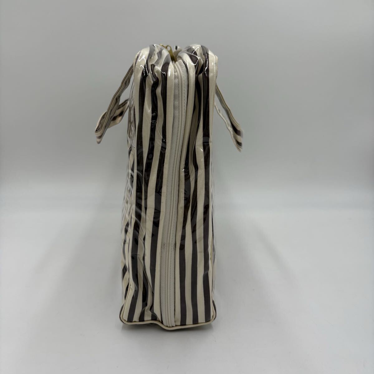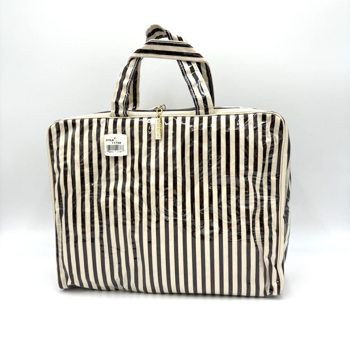 D ■ 使い勝手抜群 '米国製' 定番 茶白ストライプ柄 HENRI BENDEL ヘンリベンデル 大きめ 収納ケース トートバッグ 手提げ鞄 カバン USA製