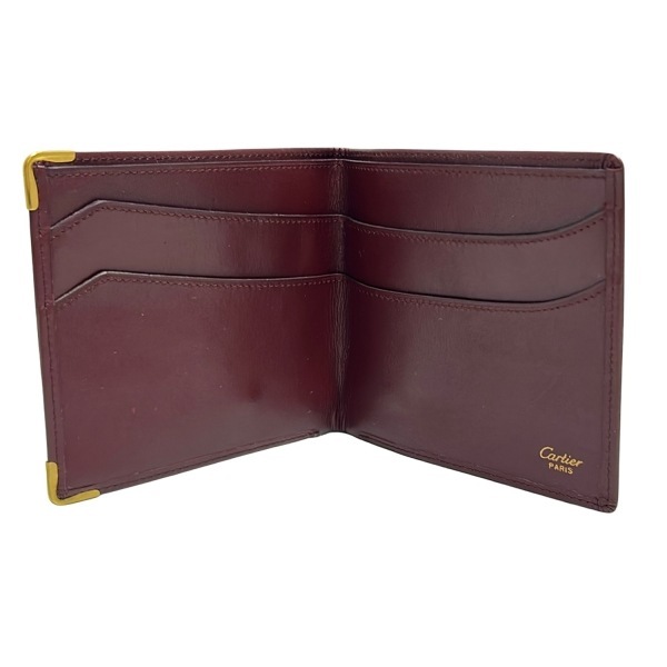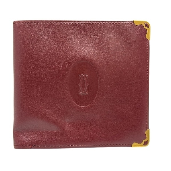 カルティエ Cartier 札入れ マストライン レザー ボルドー 2つ折り 美品 財布
