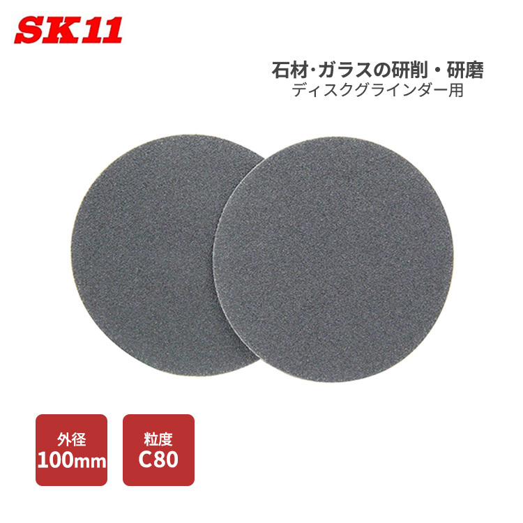 SK11 ディスク用マジックペーパー 外径100mm 粒度C80 ディスクグラインダー専用 2枚入 研削 研磨 石材 コンクリート ガラス