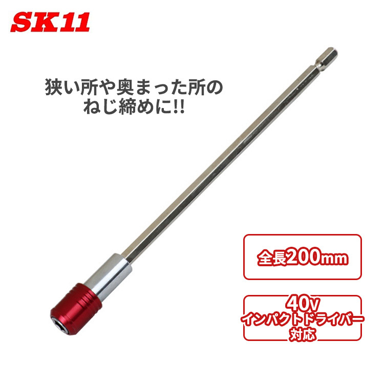 SK11 エクステンションバー 奥の手 200mm SHE-200 延長用 ワンタッチ クイックチャック ねじ締め ビット 延長