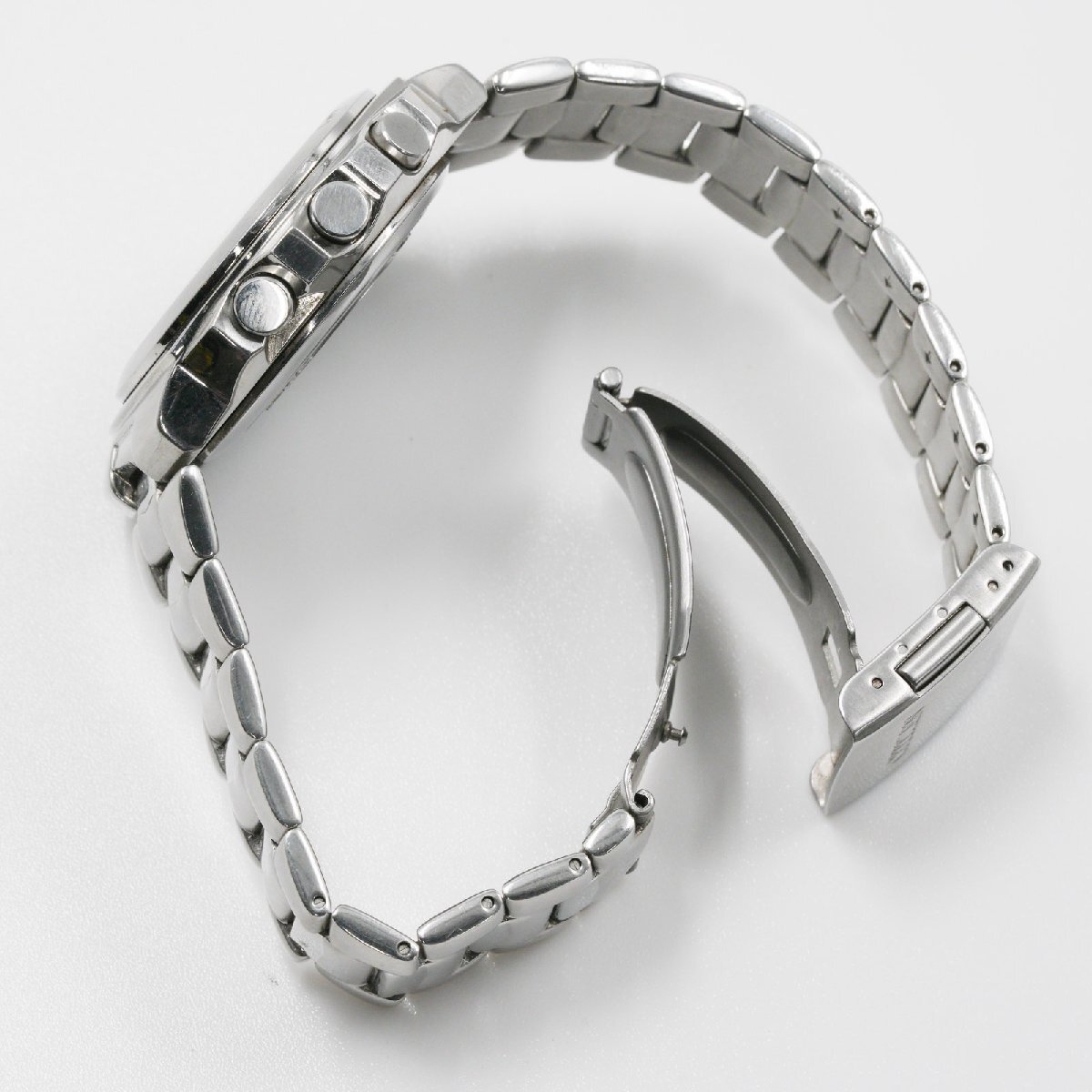 古いお品物です。フルーオートカレンダー搭載、アラーム機能と2つのローカルタイムに対応した高機能なモデルです。バッテリーが劣化しているようで現状で時計としては動作しておりませんが、わずかに電圧が残っているようで、アラーム音が聞こえるときがあります。モード切替ボタンは動作します。