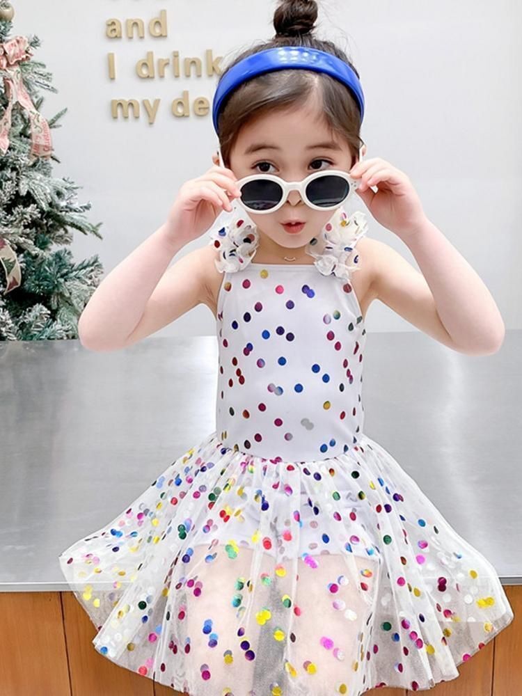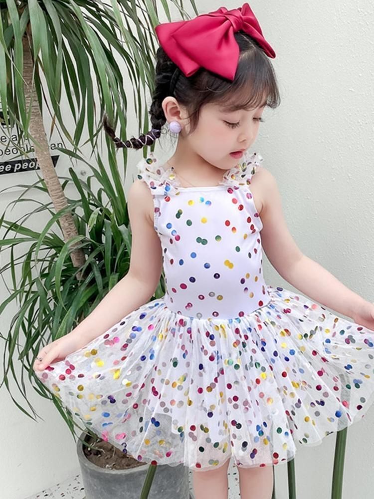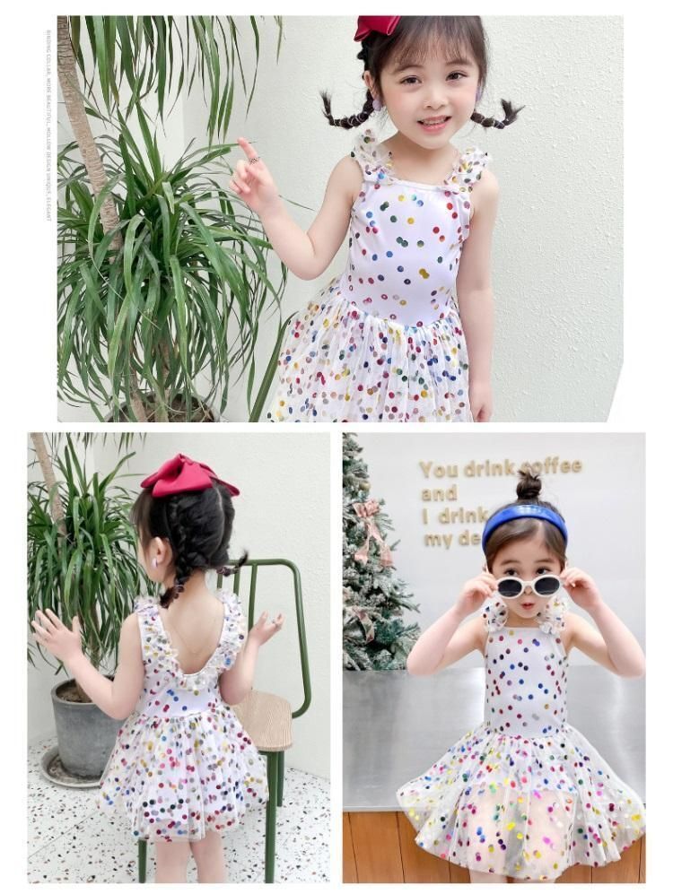 #子供水着 #女の子水着 #キッズスイムウェア #ワンピース水着 #カラフルドット #水玉柄水着 #キッズウェア #ビーチウェア #フリル水着 #チュールスカート #プリンセス水着 #子供服 #キッズファッション #プレゼント #夏物 #かわいい #ガーリー #キラキラ #プール #海水浴