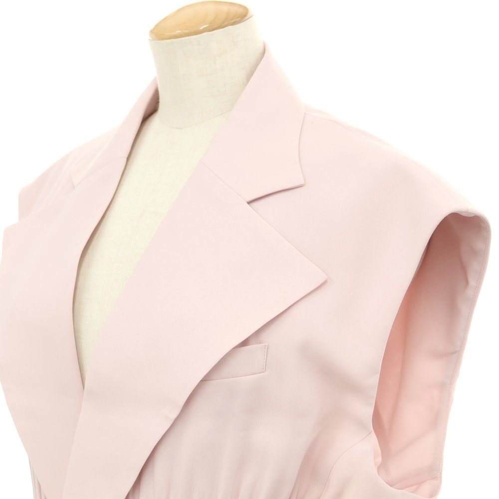 さらりとしたポリエステル系生地を使用した、2024年春夏のプリーツノースリーブジャケットです。ウエストにはプリーツ加工を施すことで美しいシルエットに仕上げられ、ノースリーブデザインなのでインナーなどと合わせてレイヤードスタイルがお楽しみいただけます。