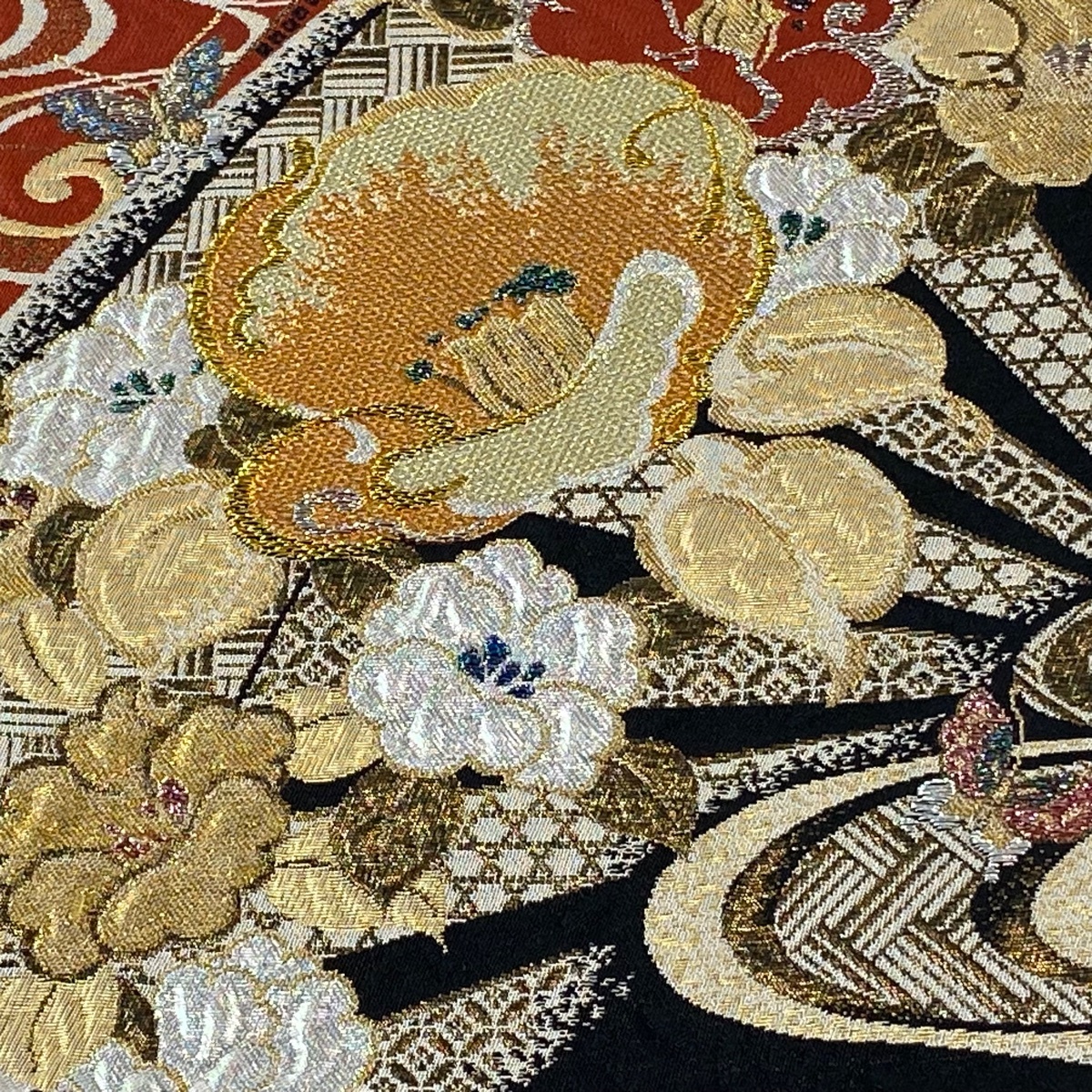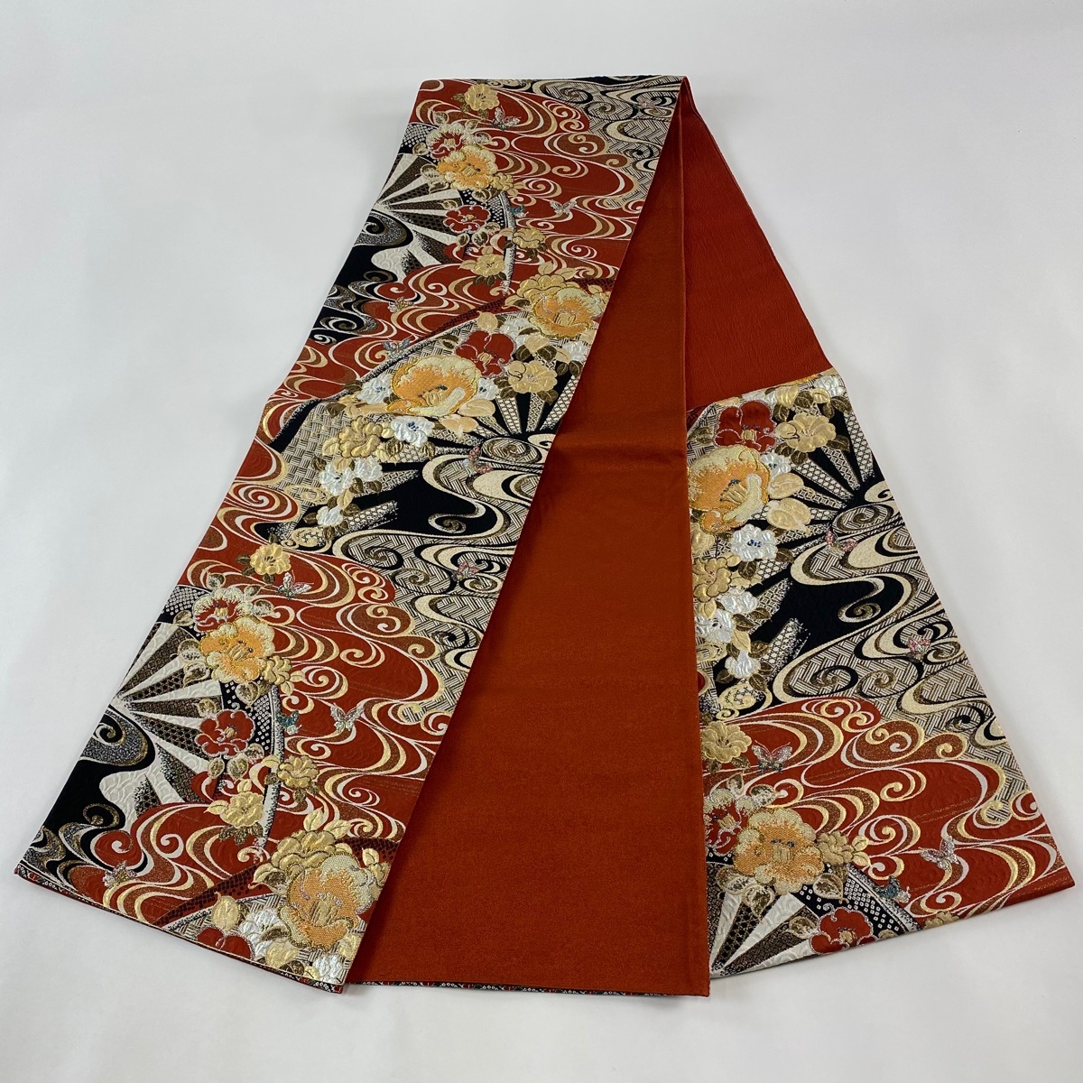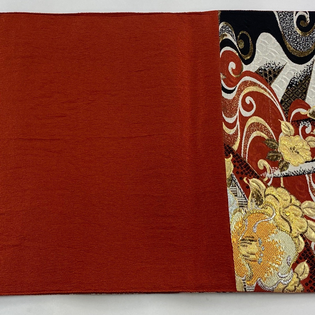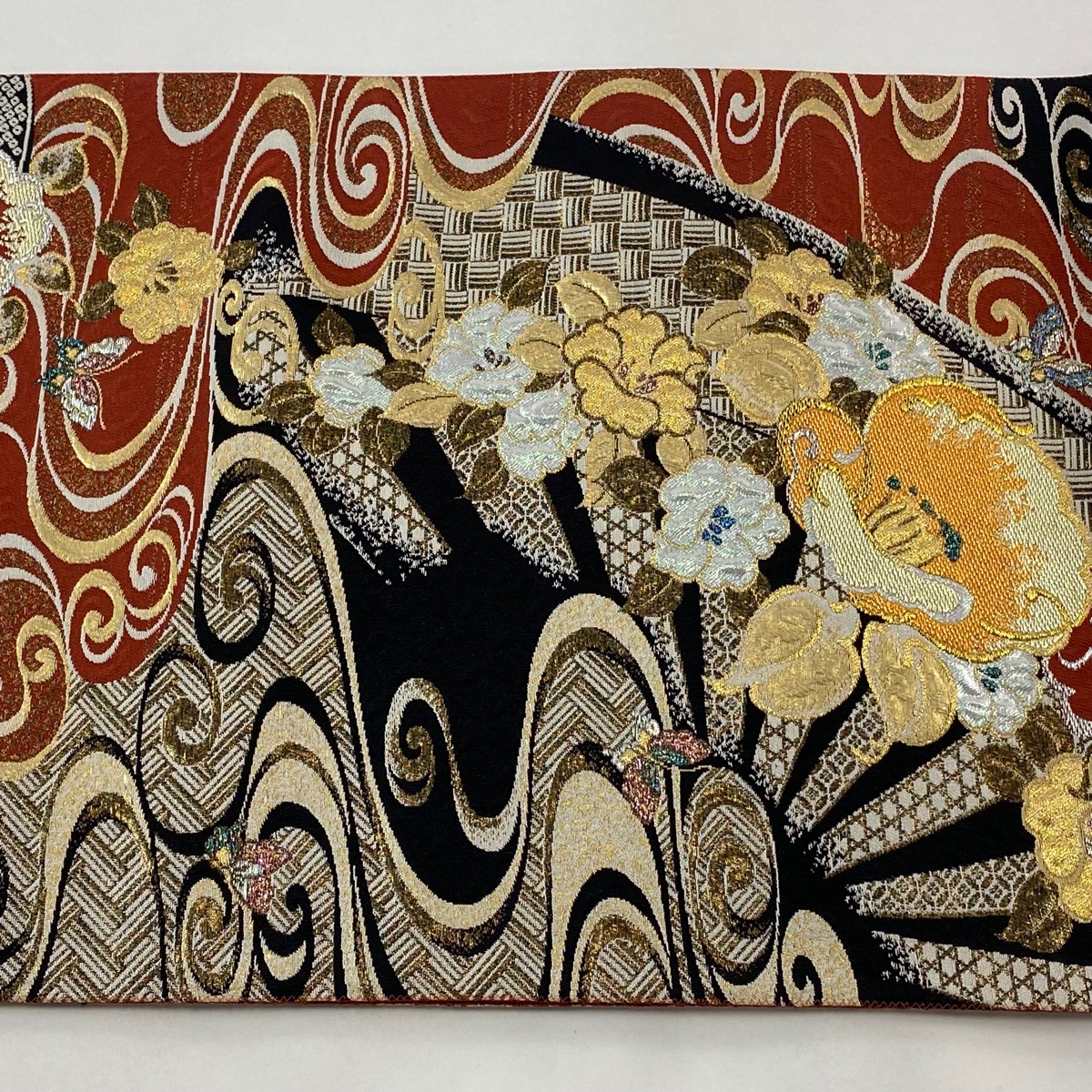 | 袋帯 秀品 花蝶 流水 金糸 箔 朱色 六通 正絹 【中古】 |