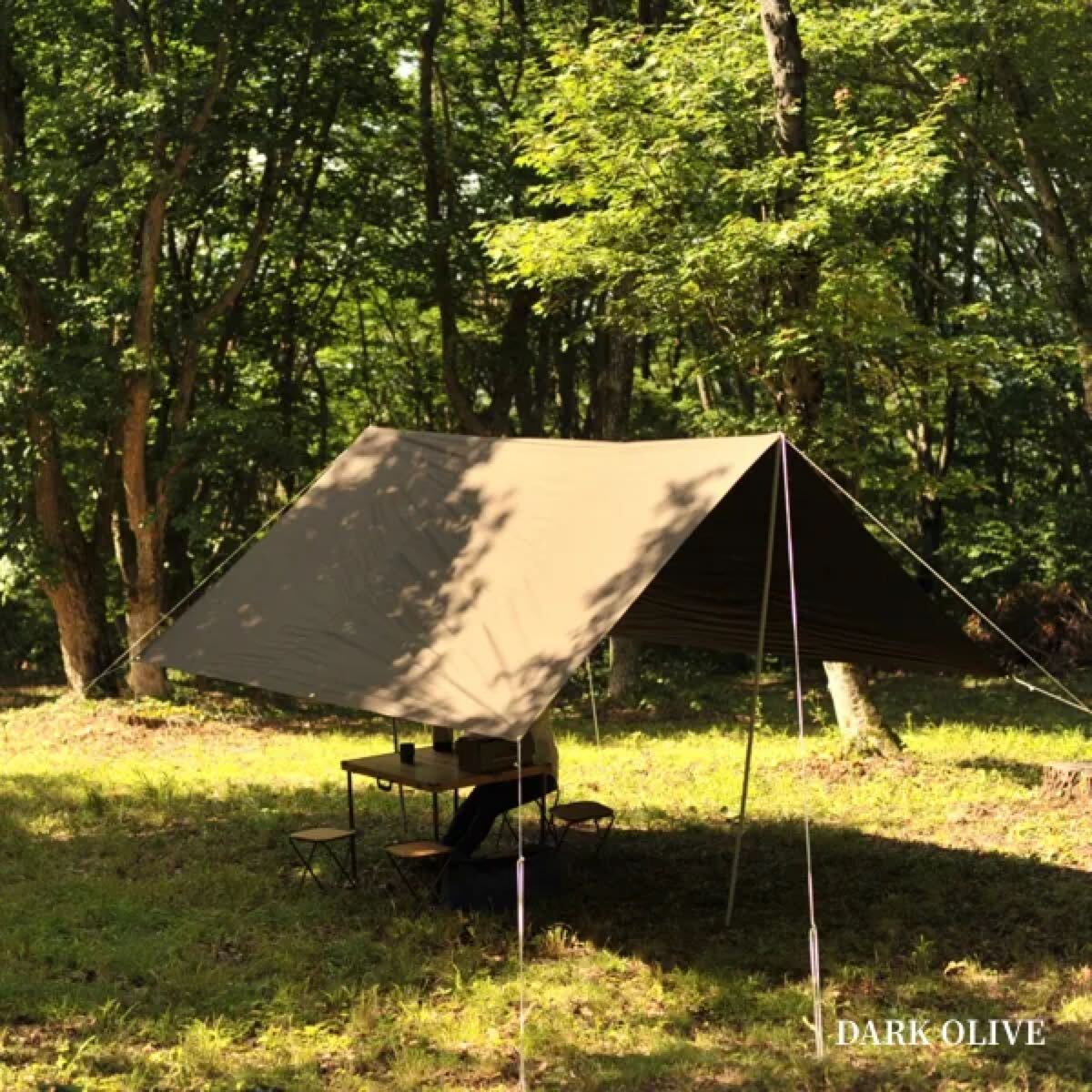 December Outdoorが手掛けたDais Design and Fieldのオーダータープです。オーダーメードサイズで寸法は320cm×290cmです。色はスモーキーベージュです。