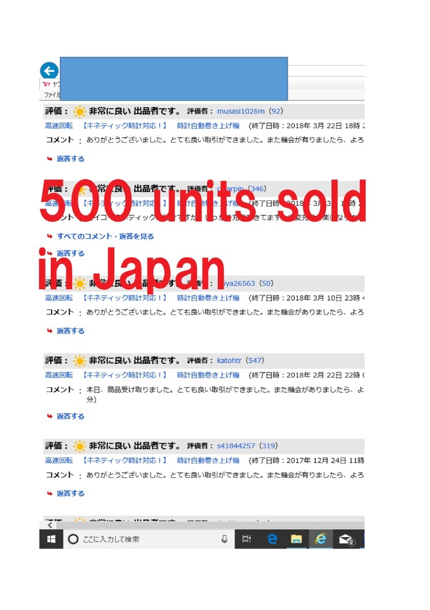 | Good news for those who have trouble recharging their kinetic! ◆Generally speaking, kinetic watches are not easily recharged by automatic winders. ◆I have bought and tried several WATCH winders, but they never charged and wasted a lot of money. ◆After contacting the manufacturer, SEIKO, we received the following disappointing response. ↓↓↓↓ We have not tested all of the winding machines on the market, but the equipment used to wind mechanical self-winding watches is not very effective for kinetic watches. Unfortunately, we do not sell a winder for Kinetic. Please follow the instruction manual to recharge the battery, as shaking the battery by hand is the most efficient way to recharge the battery. ◆In my SEIKO BRIGHTZ "SAGE003", the manual says that 200 hand shakes are enough to charge the battery for one day. For those who use it infrequently, it is a very difficult task! Why can't I recharge the battery? The reason for not being able to recharge the battery is "slow rotational speed of commercial winding machines". So, through a process of trial and error, I "modified and modified" a commerciallyavailable winding machine to create a rechargeable winding machine by myself. Increased rotational speed to a level where the kinetic clock can be recharged, speeding up to about 10 times the rotational speed of commercial products. This is a modification of the machine drive and power supply unit to increase the "rotation speed" & "power" to charge the kinetic clock. ★Please check the video here★ →→→Demonstration video ◆As a result of testing with the cooperation of many customers, we have confirmed that the battery can be charged normally and commercialized the product. I am very proud of this product. Please give it a try! <About Quality> ■No rubber belt is used in the drive unit. There is no need to worry about malfunctions due to "rubber belt breakage due to aging or prolonged use", which is a common problem with watch winders. ■The motor uses the highly reliable "Mabuchi Motor". ■It can also be used as a display case,Wind-up machine with clear front cover. I think the design is good. <Customer Testimonials(excerpt)> ★I recommend this product! We are using 5M and 9T82 and loving it! This product is unique. ★My watch is a diver's watch and weighs 200g, so I honestly wondered if it would work. I was wondering if it would work, but it was fully charged. ★I run a watch shop and this winder is very useful. ★It is very useful. I was very impressed with the quick rotation. ★Should have purchased earlier. Thank you. ★I was able to charge the batteries in all 11 kinectics I own. ★I was relieved to find that it was quieter than I expected, despite its high speed We have received many other evaluations. <message> ◆This product is purchased new and shipped with the drive modified. ◆This product is new, but will be modified, so there is no manufacturer's warranty. ◆Please leave the color to us. ◆This product is programmed to rotate left/right and stop automatically. ◆Includes AC adapter.(100V~200V) ◆Depending on the structural differences of the kinetic and the condition of the watch, it may not be possible to recharge the battery. However, we have sold over 500 units and have not received any reports of not being able to charge the battery. ◆After modification, the product will be fully tested before shipping. Please do not return the product. ◆Not enough photos can be posted. Sorry. ◆This winder has a clear front cover that can be used as a display case.I think the design is good. | |