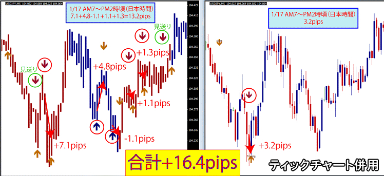次は、「FXティックチャート手法」を使ったある日のトレードです。