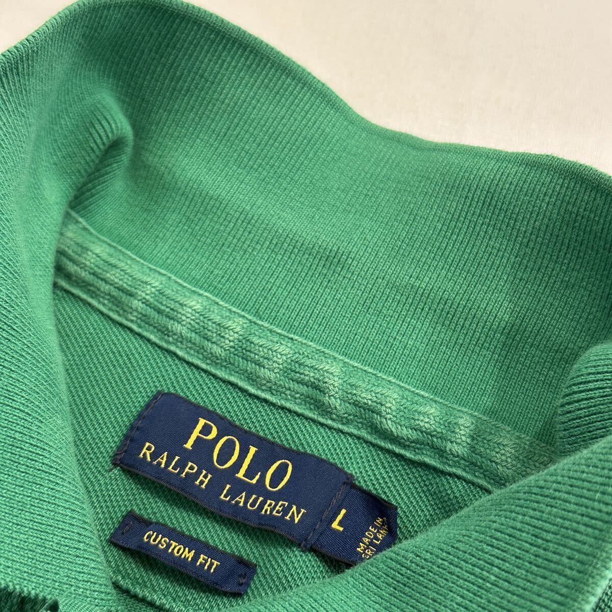 POLO Ralph Lauren Polo Shirt S/S Tee CUSTOM FIT ポロ ラルフローレン ポロシャツ 半袖 Tシャツ 鹿の子 ロゴ キルティング ワッペン L