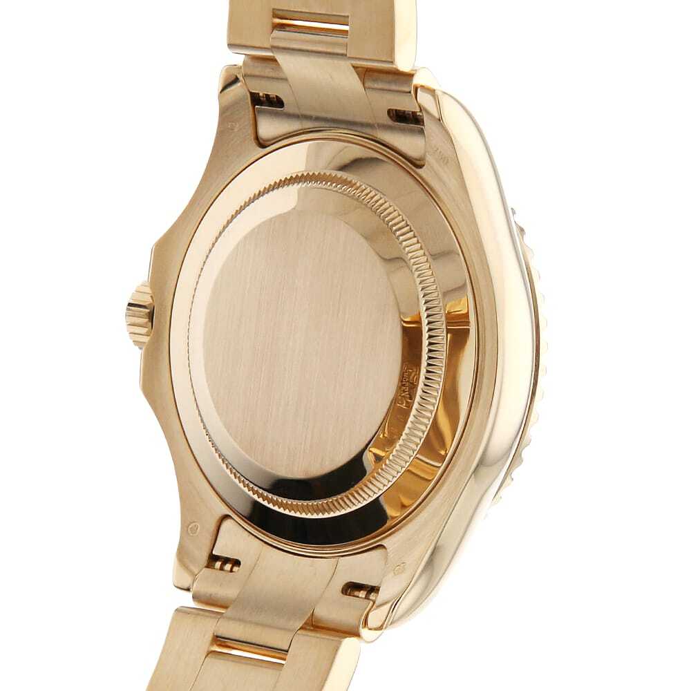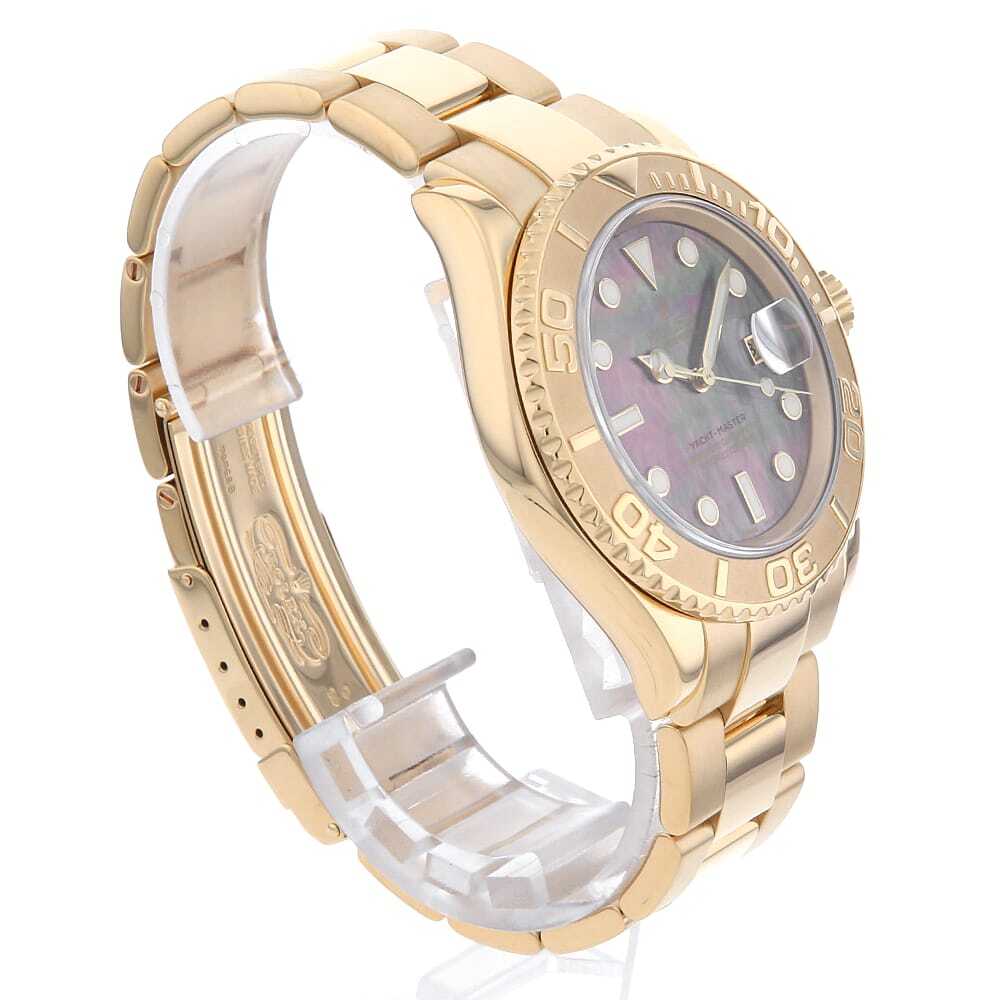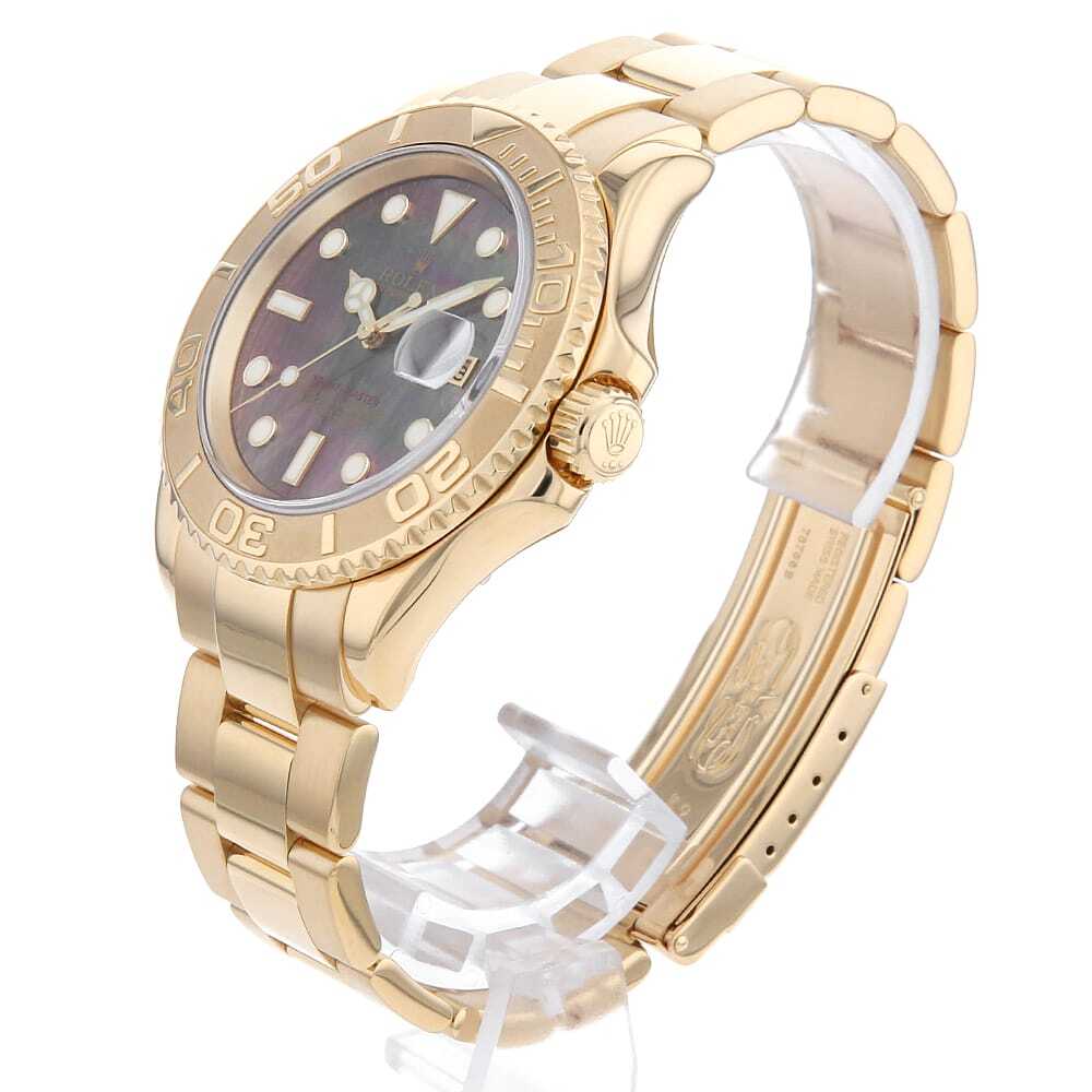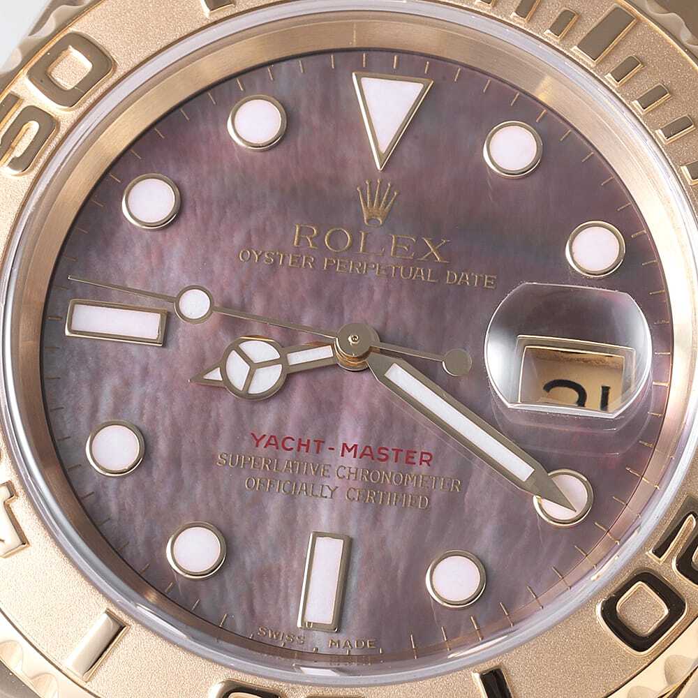 | モデル情報 | サブマリーナの上位機種として登場した"ヨットマスター"。自家用クルーザーやヨットを所有し、クルージングを楽しむセレブな方々をターゲットにした高級スポーツウォッチです。水深100mの防水設計がされており、回転ベゼルは船上での経過時間を計ることが出来ます。ケースからブレスまでK18YGを惜しみなく使用し、ラグジュアリーな印象を与えるモデルです。また、こちらはブラックシェル文字盤となり、光の加減によって美しい輝きを放ちます。 |