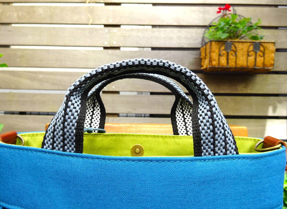 ■持ち手 : 新品の前掛け紐を使用(青×白)幅1.7~3㎝・長さ20㎝×2本