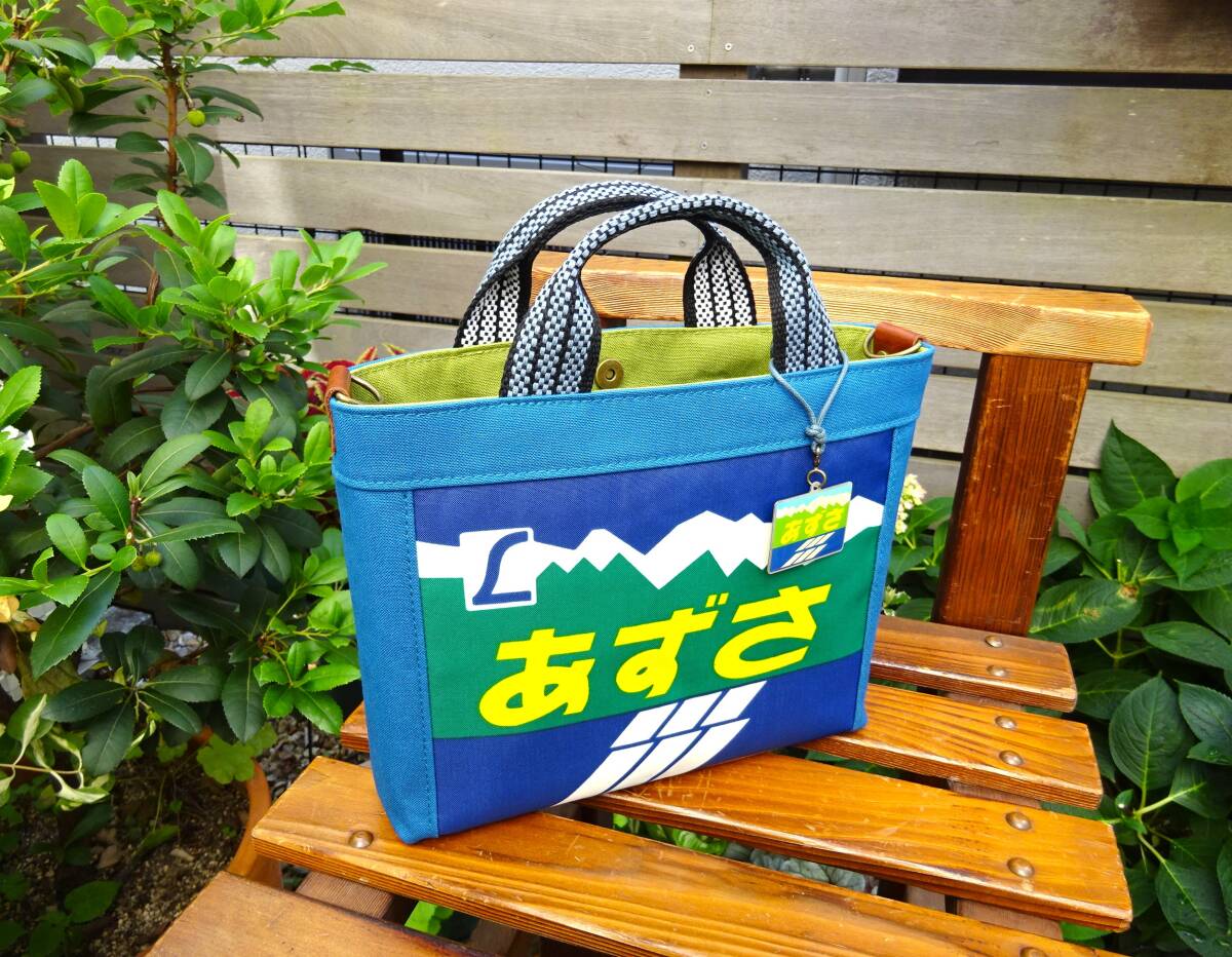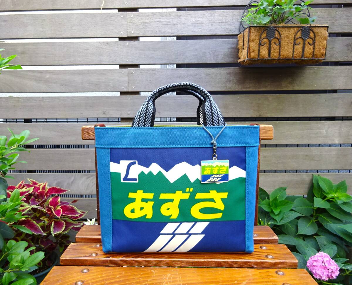 ◆送料無料◆廃番レア品■ヘッドマーク『あずさ』L特急 ミニトートバッグ■前掛け紐 ストラップ&チャーム付 手作りリメイク 鉄道トレイン