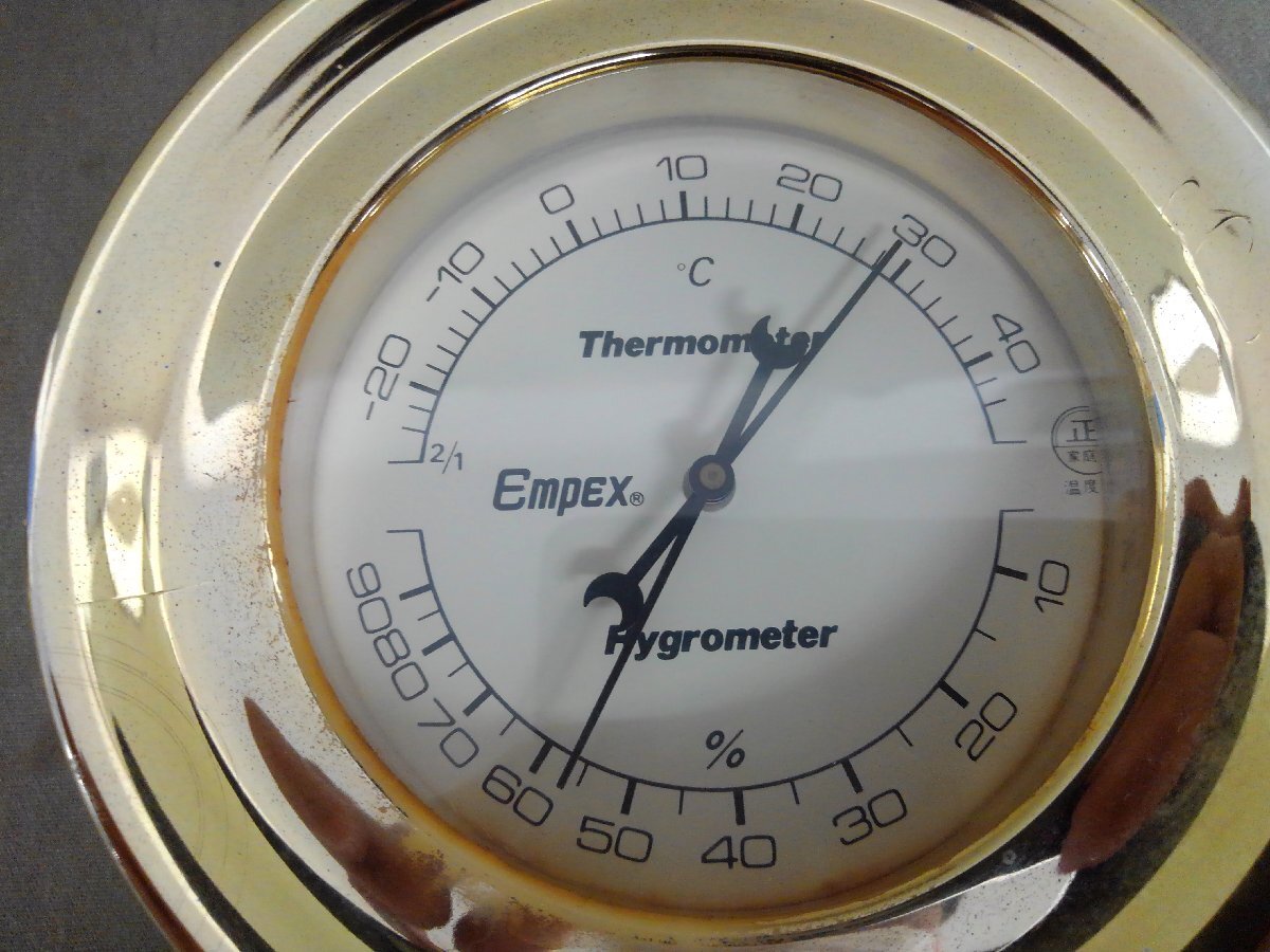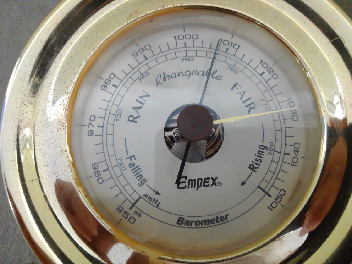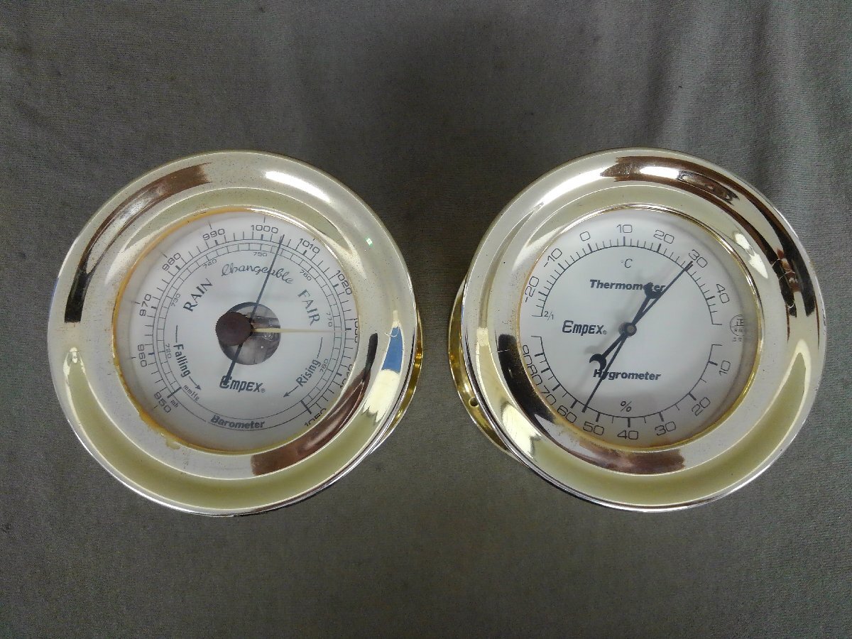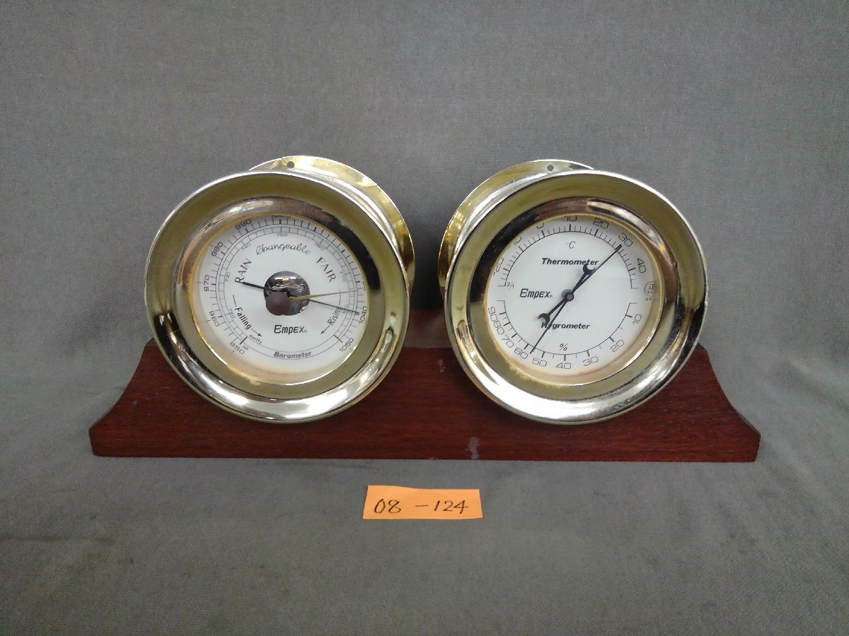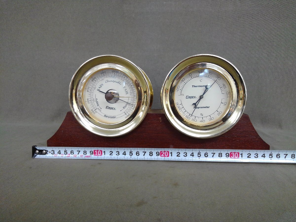 ●★08―124★環境測定器 Empex エンペックス アネロイド気圧計/温度湿度計 土台付き 汚れ、傷有/天気 気象 置物[80]