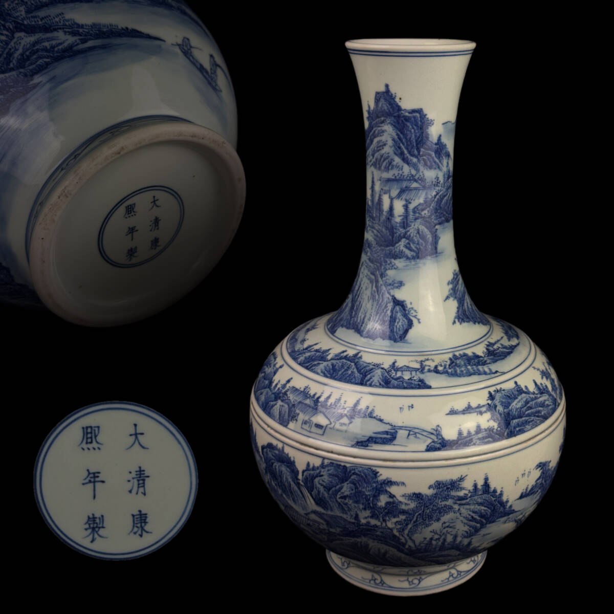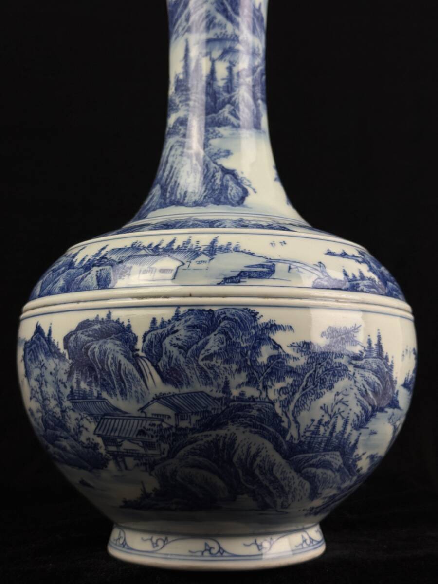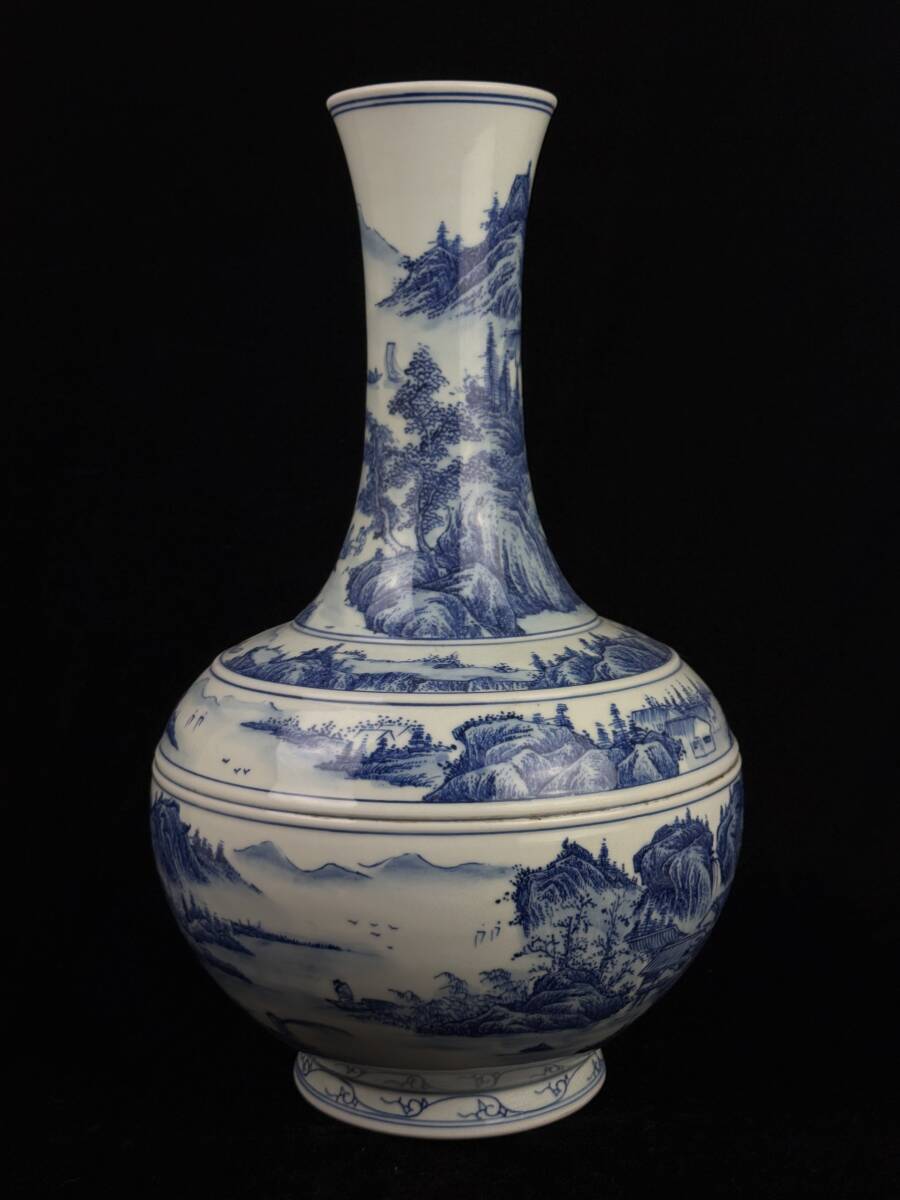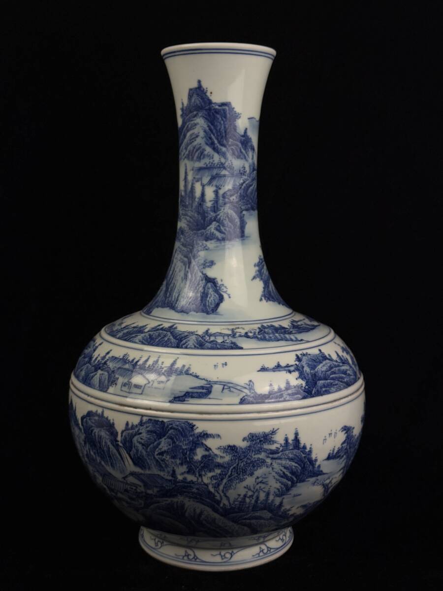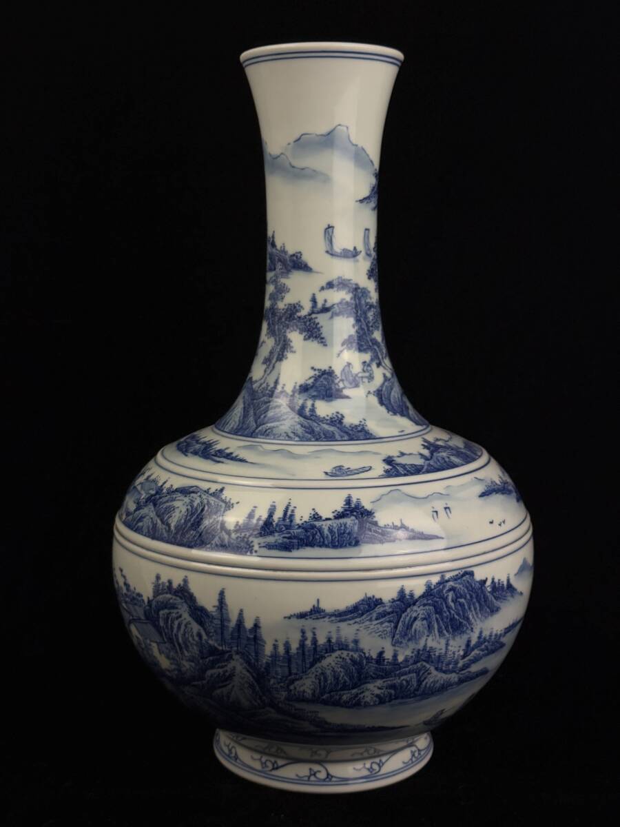 商品説明 | ◆ 商品情報 ◆ 【細密図画】中国美術 染付花瓶 蓬莱山水図 高さ37.4cm