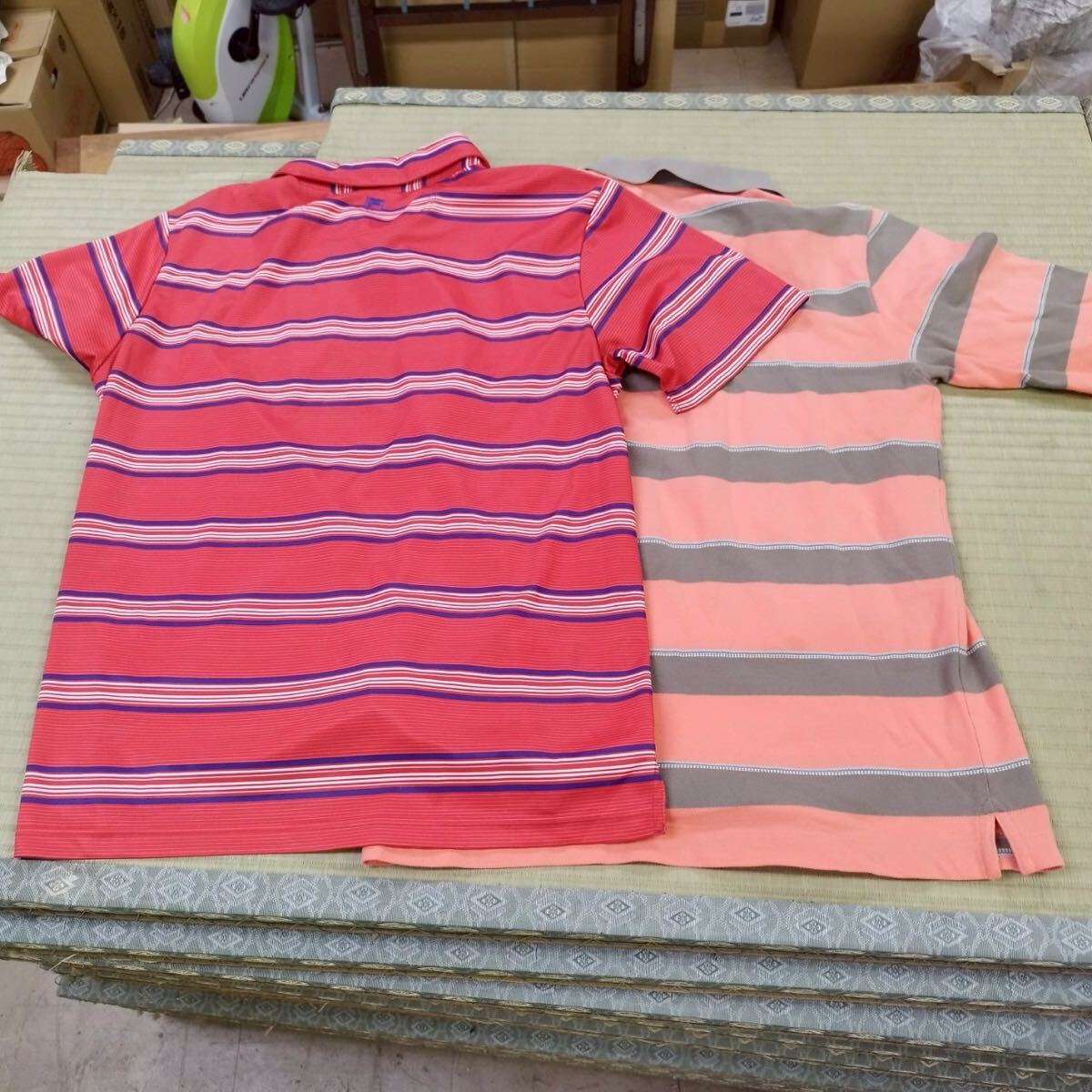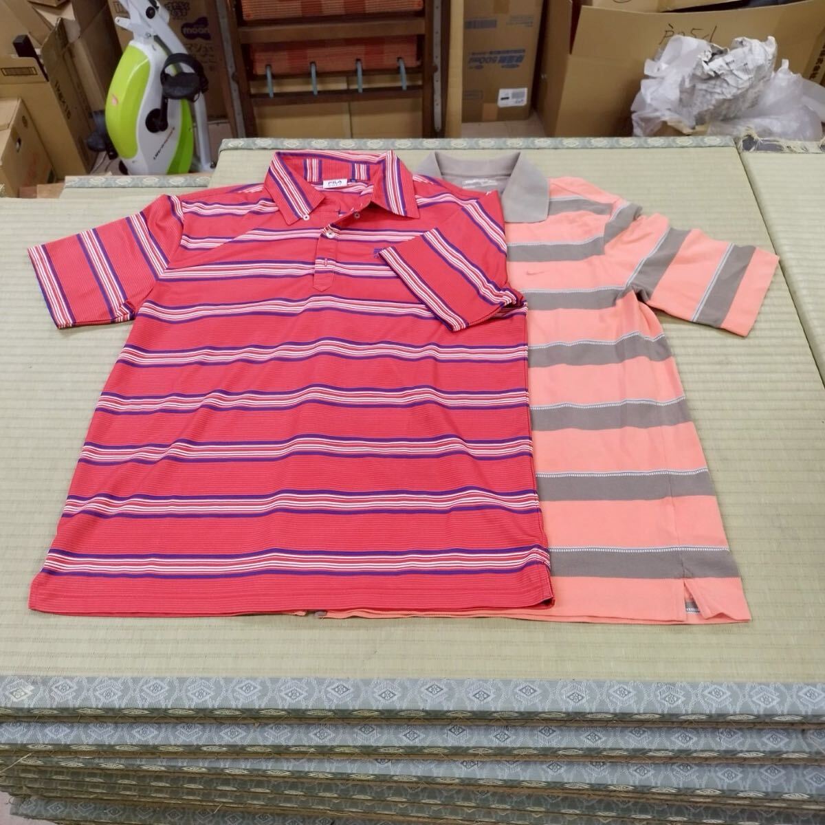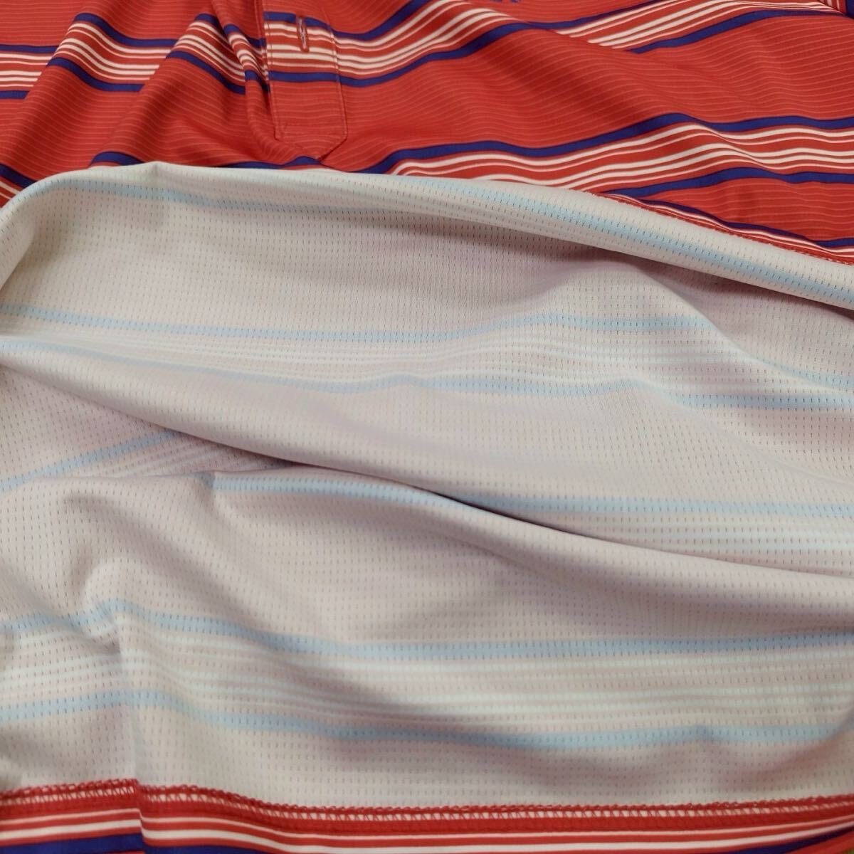 戸04bb NIKEGOLF ナイキゴルフ FILA Lサイズ ボーダー ポロシャツ ウェア ピーチピンク ショッキングピンク