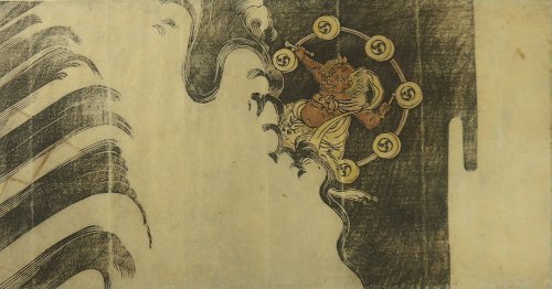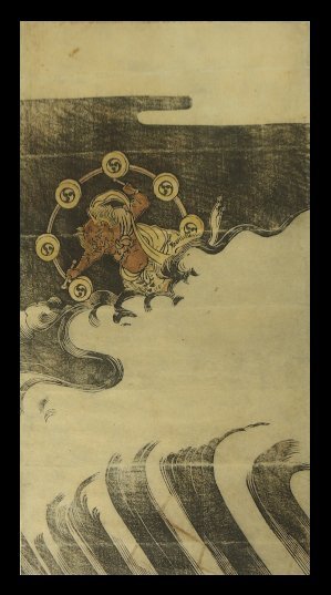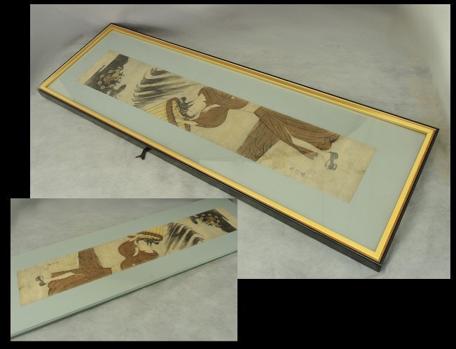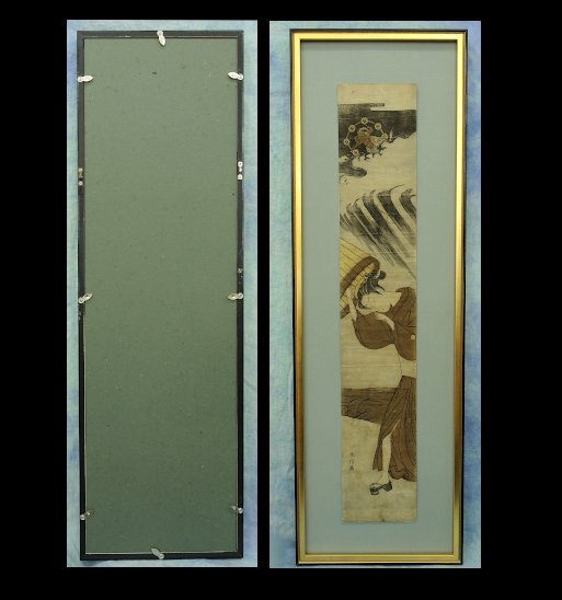 鈴木春信 柱絵 雷さま 木版画 錦絵 68.5cm 美人画 春信 Japanese woodblock print レトロ 額入り インテリア