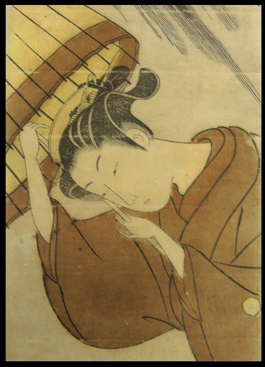春信画の古い錦絵(木版画)です。裏打ちされているようです。