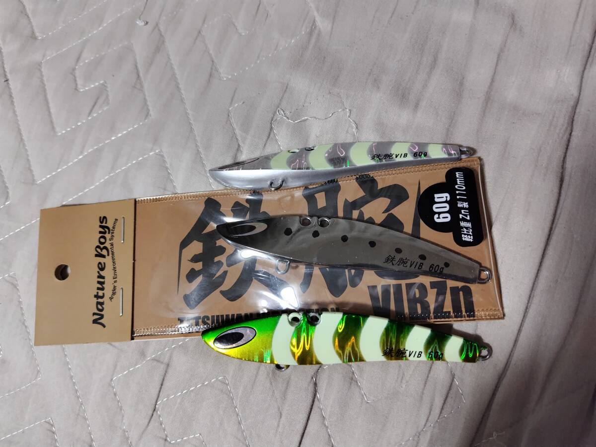ネイチャーボーイズ (Nature Boys) 鉄腕バイブZn 110mm 60g #04K 3個セットです。クロムサーディンだけ包装付きです。ナクイグローはスプリットリング装着テストの時に、塗装が一部剥がれたよーな気がします、写真で確認ください。ネイチャーボーイズは、アイが小さいことがおーく装着テストをしたためです。定形外で送りますが、遠方だと1週間とかかかりますのでご了承ください