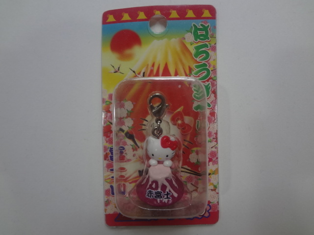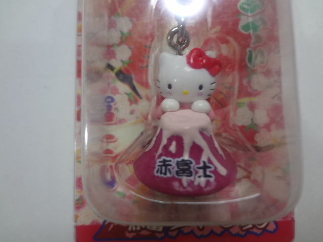 レア 赤富士バージョン ハローキティ ストラップ 根付け 未使用保管品