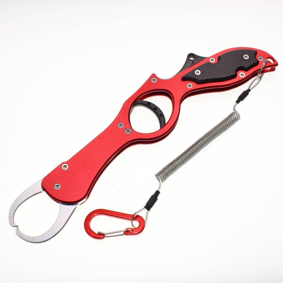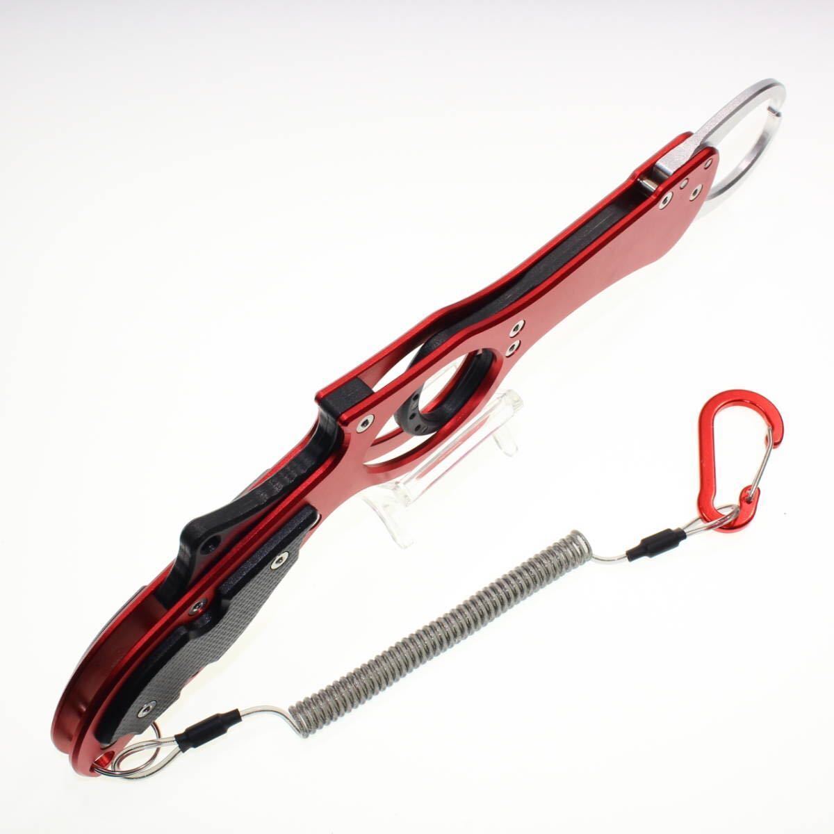 フィッシュグリップ 軽量 アルミ製 魚掴み ロングリーチ ガングリップタイプ レッド×シルバーの出品です。