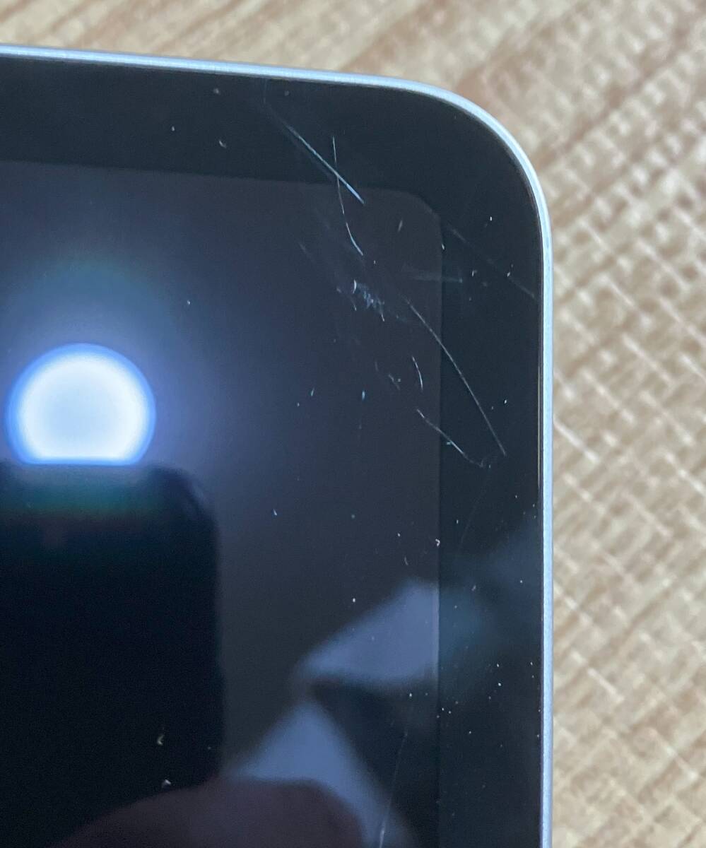 前面:大きな傷・汚れはありませんが、画面右上に画像5枚目の薄い傷があります。