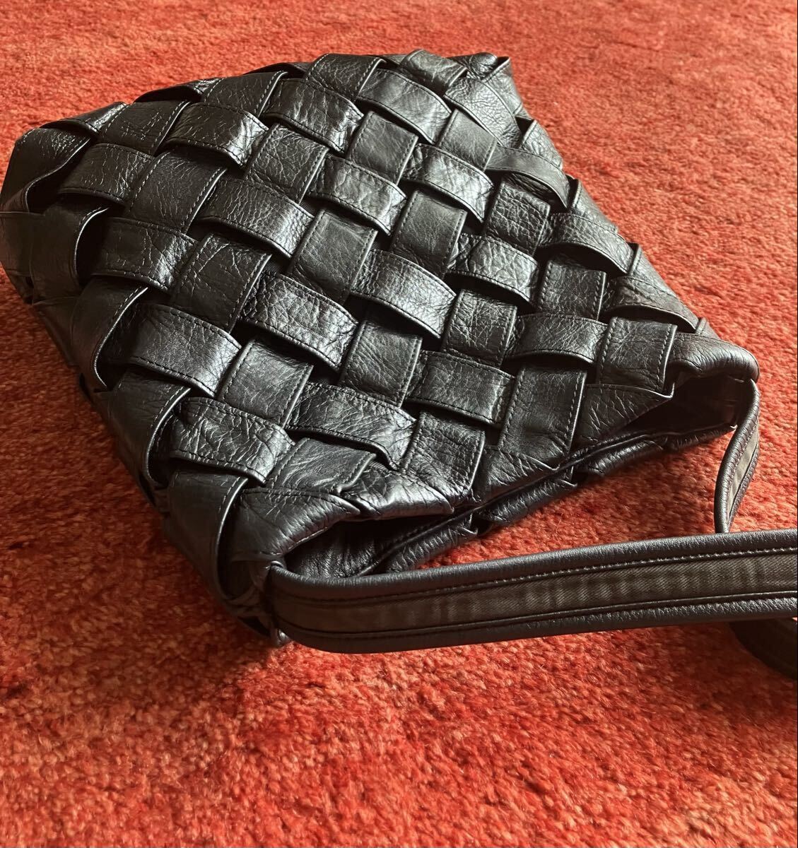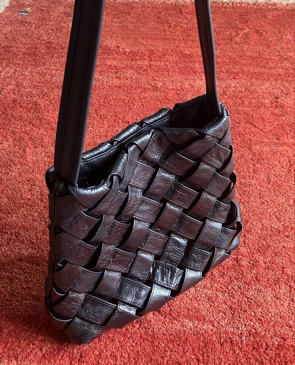 本革の牛革レザーの大きなメッシュ編みは、なかなかないステキな品のあるお品です。