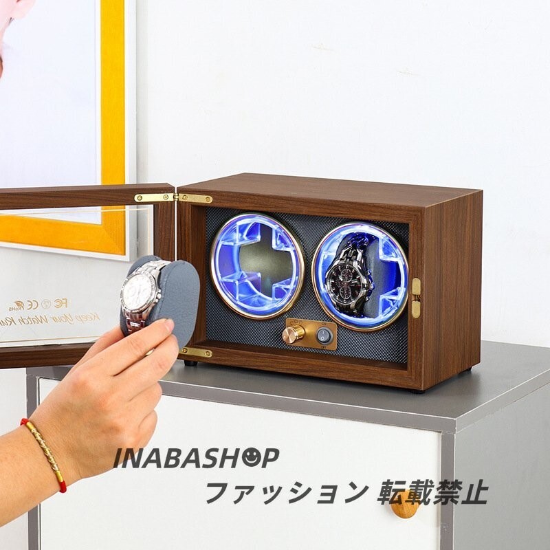 ★状態:新品未使用 ●商品名:ワインディングマシーン ●サイズ:245*160*155MM ●材質:MDF、木材(クルミ材)、ABS、メモリコットン枕 ●モード:O:電源ボタン モード-:時計回り2分→6分間停止→反時計回り2分→6分間停止→繰り返し モード=:時計回り5分→反時計回り5分→(3時間繰り返し)→9時間停止→繰り返し ●ご注意: モード-は短時間使用におすすめで、モード=は長時間使用におすすめです。 (一部の機械式時計はモード=でチェーンフュジーできない場合、モータ-を使用してください。) ●電圧:3V-9V/1A-5A(海外通用) ●モーター:静音モーター ●セット内容:本体、USB&DC給電コード、外国語説明書 ※説明書や外装は外国語となります。 ★商品写真はできる限り実物の色に近づけるよう努めておりますがご使用のPCモニター設定や部屋の照明により多少、色の変化が感じられる場合がございます