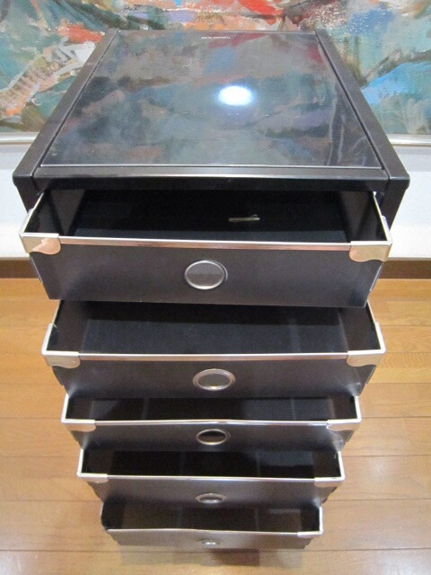 レトロ アンティーク ビンテージ キャビネット 小物入 袖机 脇机 オフィスチェスト サイドテーブル ガラス天板 キャスター4個付 ★801
