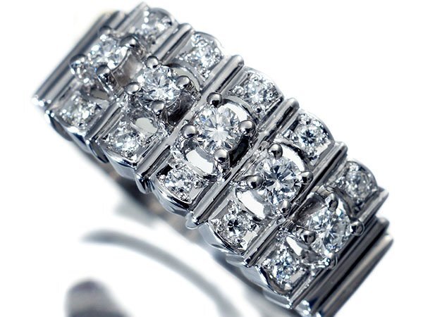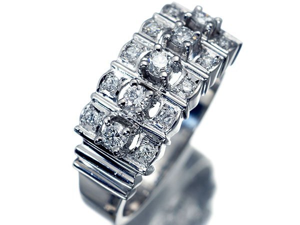 3段セッティングで華やかに輝く、上質天然ダイヤモンド総計0.35ctを素敵に宝飾した、高級Pt900リングを1円から特別大放出致します!