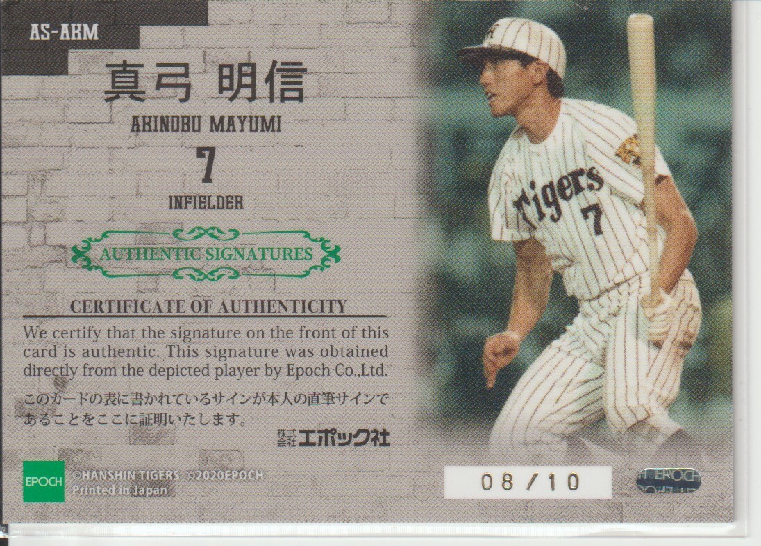 真弓明信 2020 EPOCH 阪神85周年 10枚限定直書き直筆サインカード 08/10