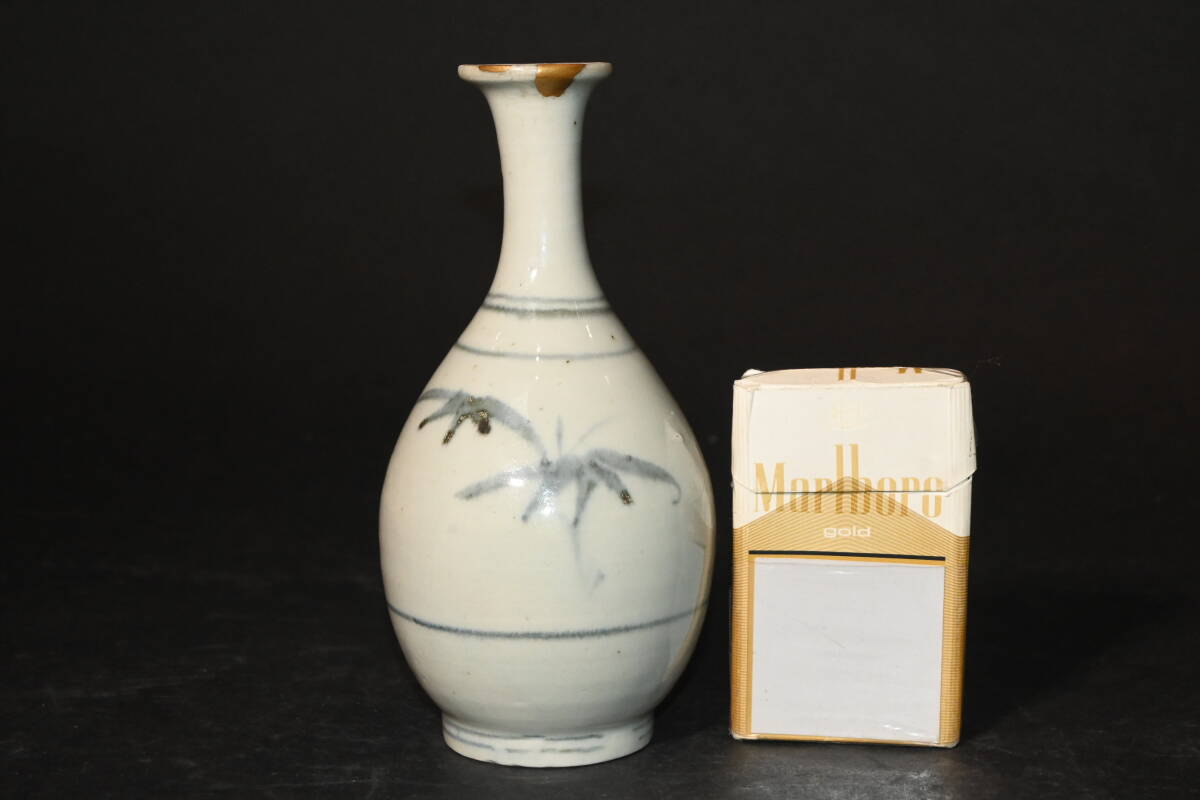 ★画像・商品説明・注意事項を必ずご確認下さい、ご理解頂いた上で入札をお願いします★ 状態に関しましては、経年によります疵・汚れ・口に金継ぎ直し、ニュウ有。必ず全ての画像をご確認いただき、ご納得頂いた上でご入札をよろしくお願いいたします。 経年品・長期保管品である為、画像をよくご覧になった上で、ご判断下さいますよう宜しくお願い致します。 ご不明な点等ございましたら、必ず入札前にご質問下さい。分かります範囲でお答え致します。(※終了日・終了時間間際のご質問にはお答え出来ない可能性がありますのでご了承ください。) 画像と実物が撮影時の照明の兼ね合いで違う場合がございますので、ご了承ください。 《サイズ:約》 胴径 8.2cm 高さ 16.5cm ※付属品に関しましては画像の物が全てです。(タバコの箱はサイズ比較対照物) ●ご入札の取り消し・キャンセルはお受けできません。ご入札前にしっかりとご検討いただき、慎重にご入札をお願い致します。 | |||