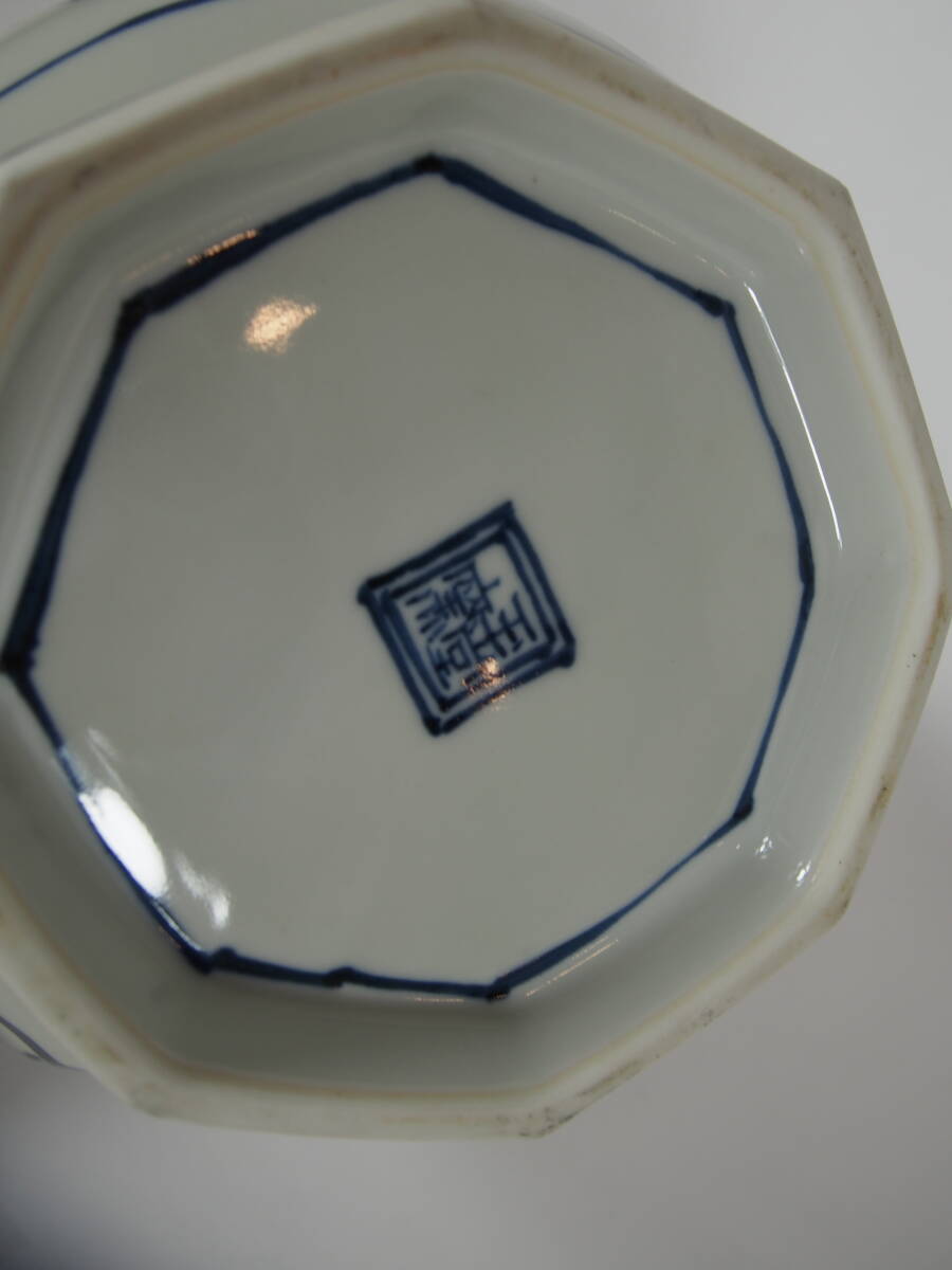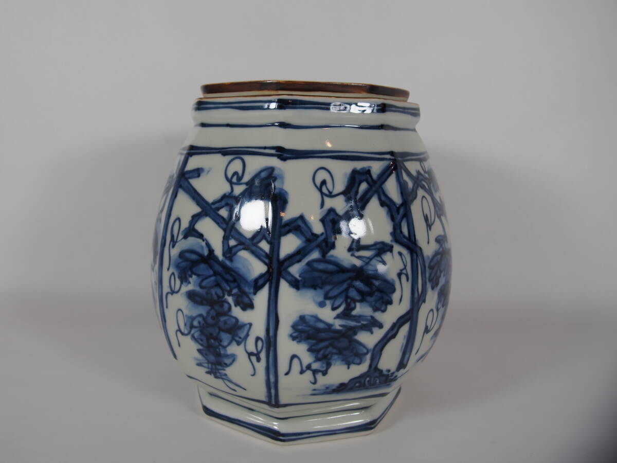 二代 手塚玉堂 染付 葡萄棚 水指 在銘 玉堂 共箱 茶道具 N-71