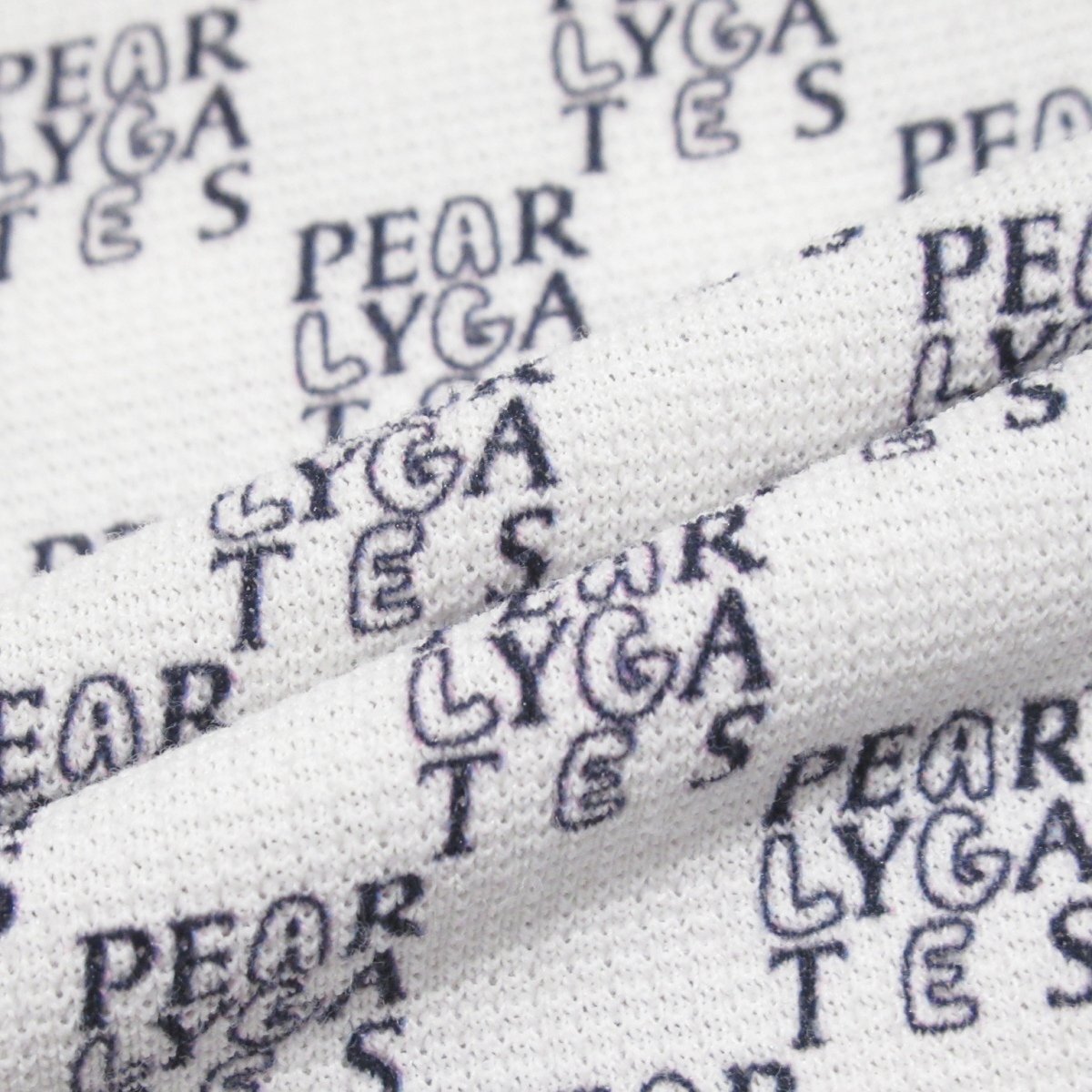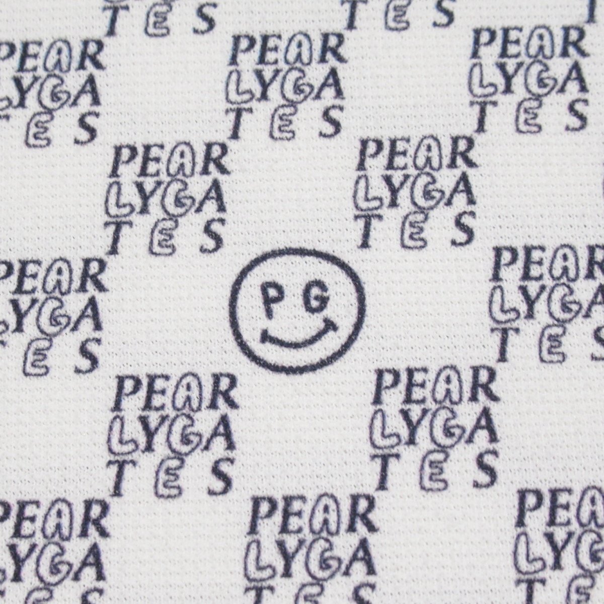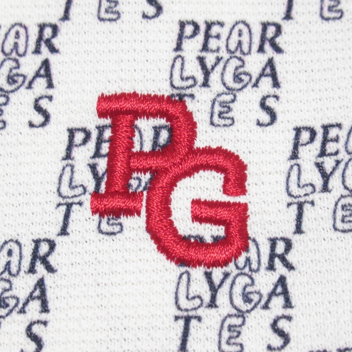 異なるフォントを組み合わせたPGのスクエアロゴの中で、よく見るとPG SMILEが発見できるオリジナルの柄がユニークなポロシャツ。