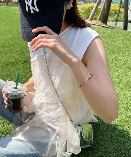 「andme」 「alma design」ノースリーブトップス M ホワイト×ホワイト レディース