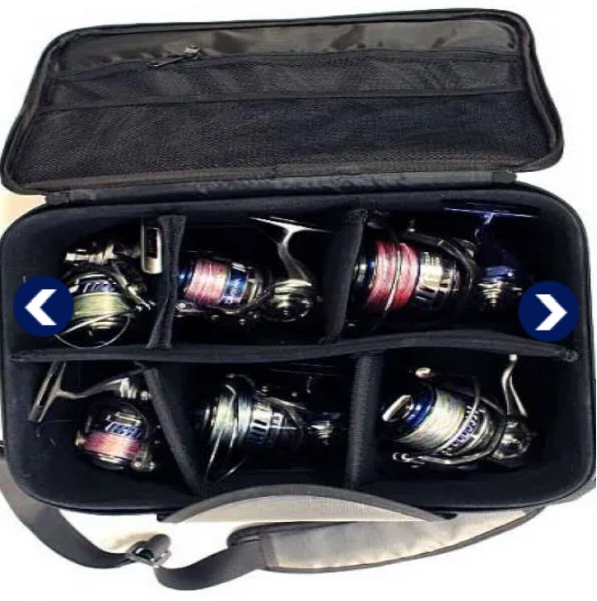 ★ Lサイズなら大型リールが6台収納可能(写真はシマノ20000クラス)