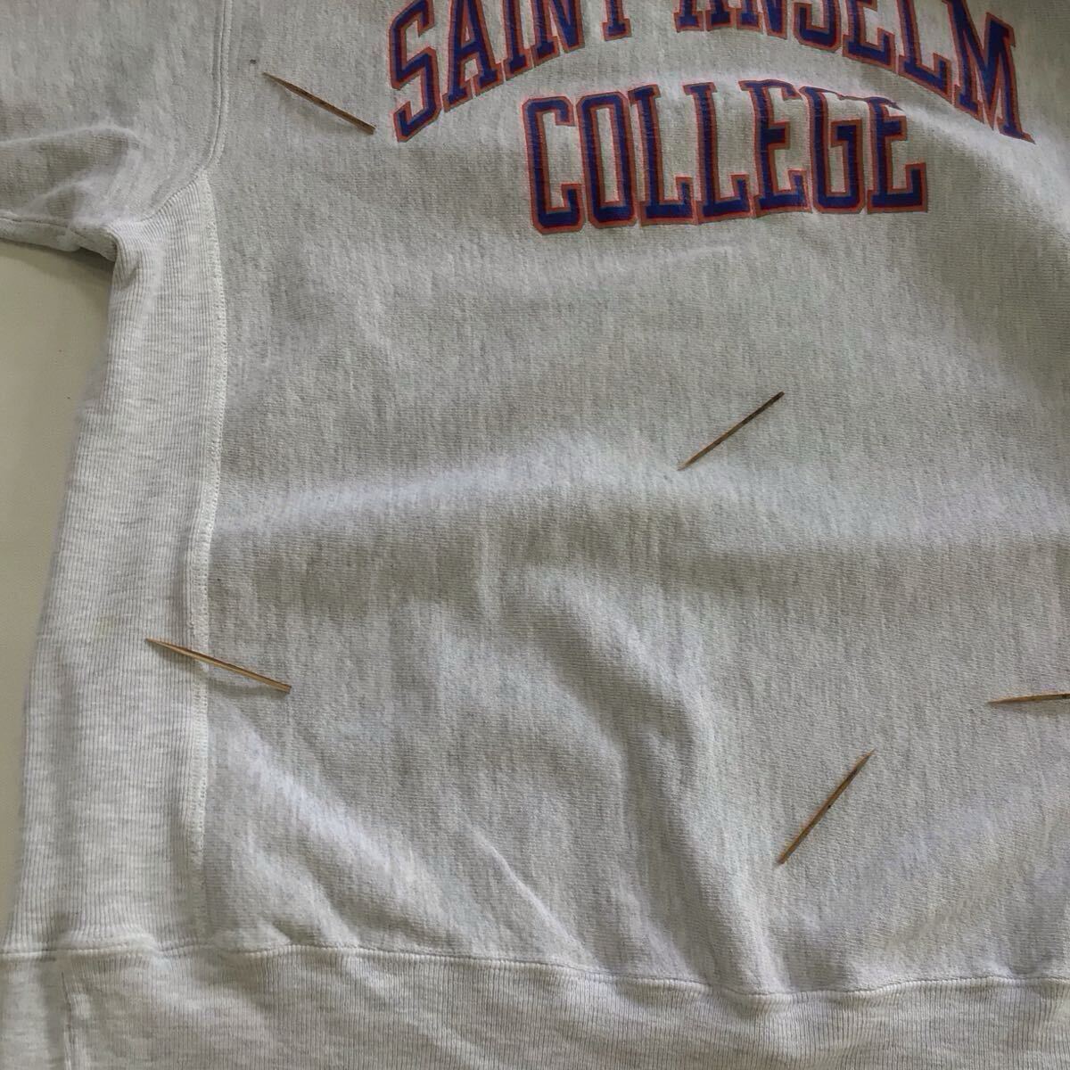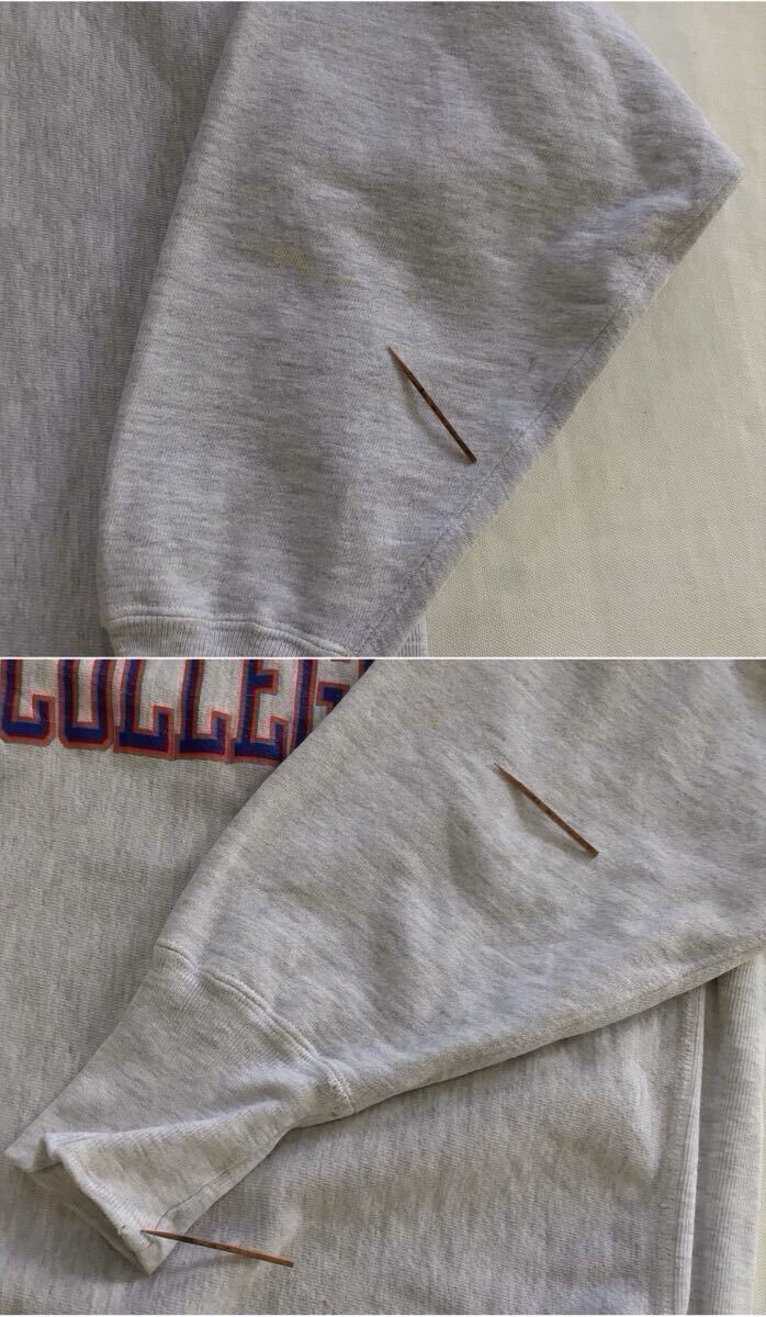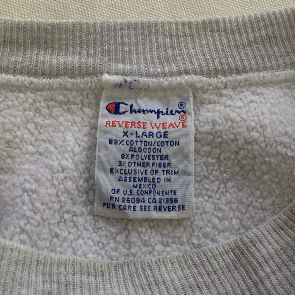 ディテール:1990-2000年代メキシコ製リバーススウェット、嬉しい大きめサイズ、グレー地に赤紺のプリントが映えます。肉厚な生地は程よく小慣れ、古着らしい良い雰囲気です。些細なダメージはありますが着用すれば気にならない程度かと思います。