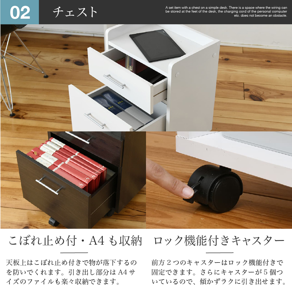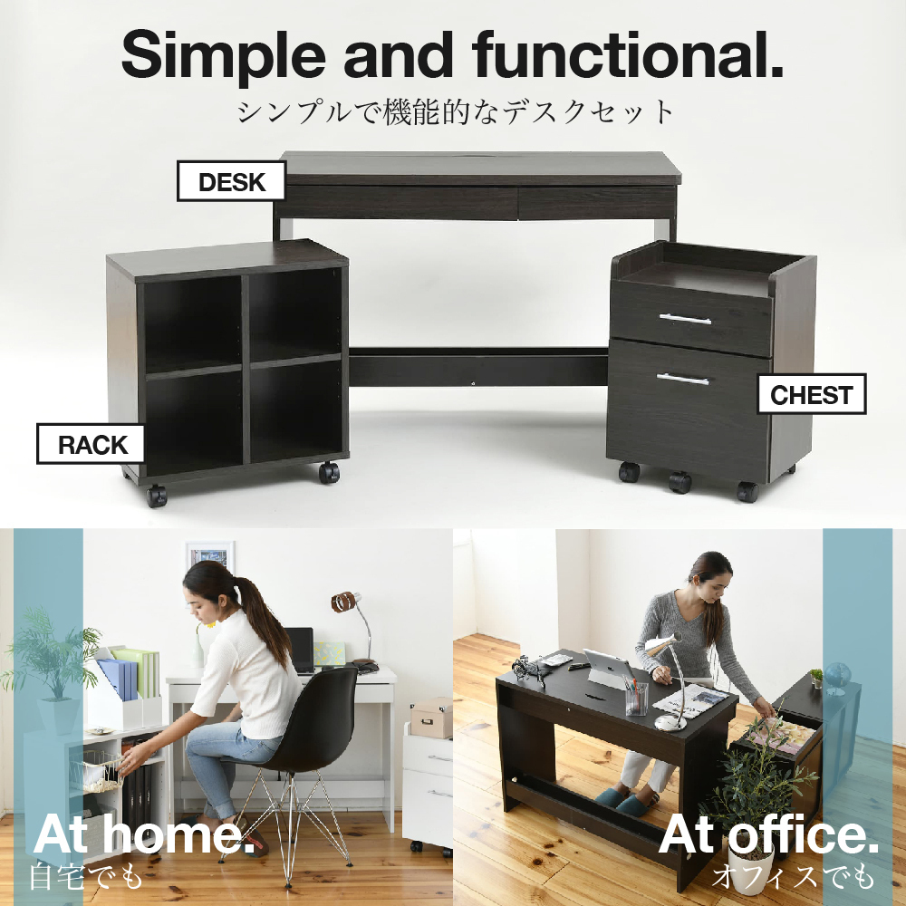 | 商品名 | デスク シンプル 3点セット 収納 チェスト ラック 幅100 奥行45 木製 ダークブラウン M5-MGKJKP00088DB |