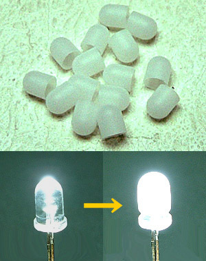 ■狭い指向角のLEDに被せるだけで、広指向角の拡散LEDにすることができるLEDキャップです。