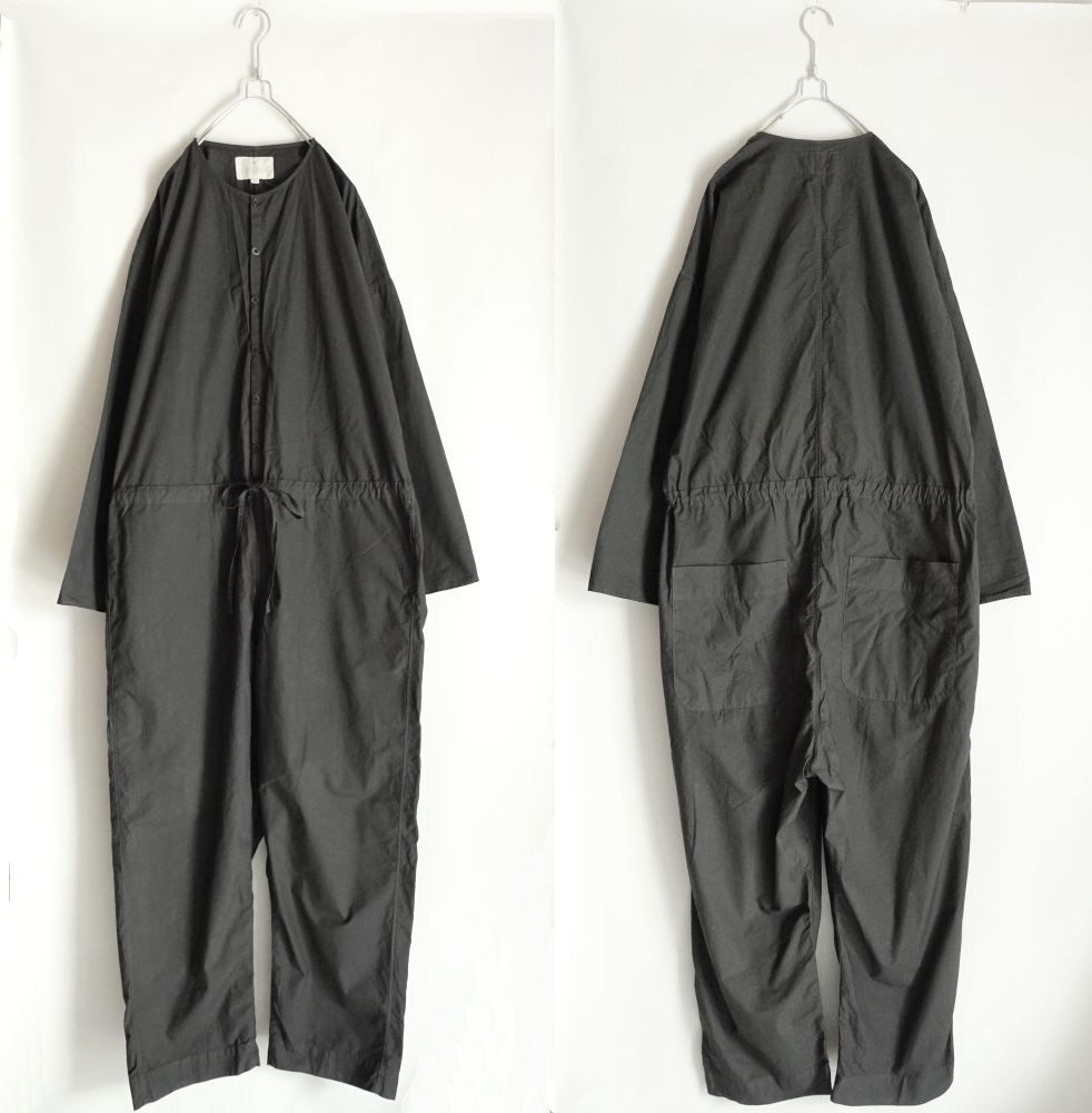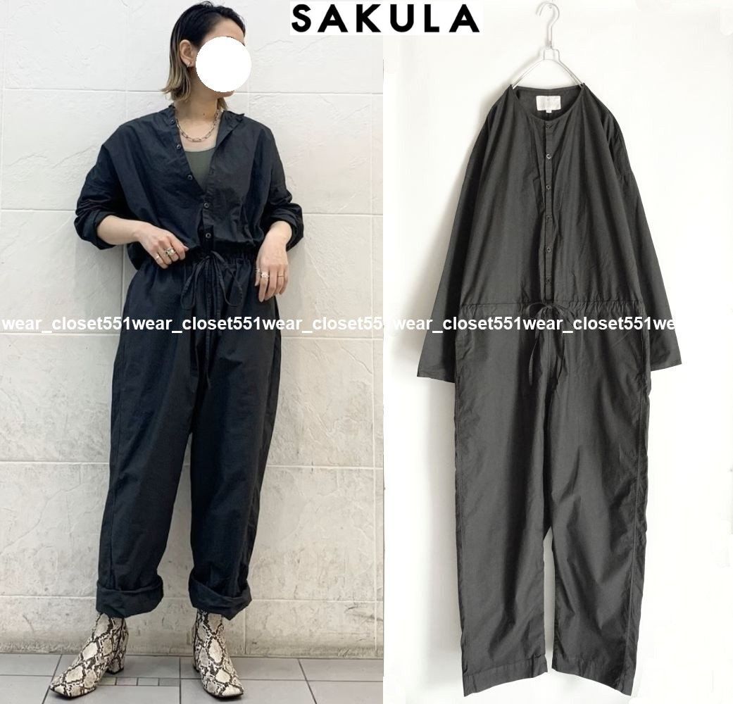 素材、縫製、加工を日本屈指の生産背景で本当に自分たちが良いと思えるものを心を込めて追求したブランド【SAKULA/サクラ】のハンサムスタイルが楽しめるオールインワン。2020S/Sの定価25080円。ワーク系とは一線を画したノーカラーとウエストリボンがポイント。女性らしいヒールやアンクルストラップサンダルを合わせれば、こなれ感のある甘辛ミックスコーデが完成。コットン素材で着心地が良く、オールシーズン活躍する使える1枚。