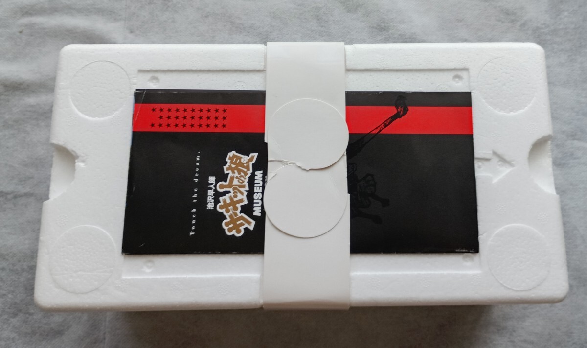・紙ベルトを挟む形で発泡スチロールケースを留めていますが、留め口に破れあり