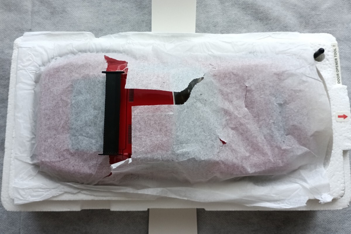 発泡スチロールのケースに入れられています。画像は蓋を開け、車体に触れずに撮影しています。