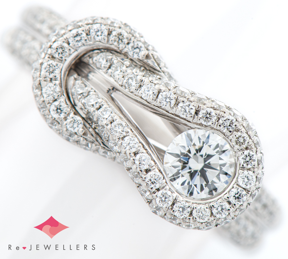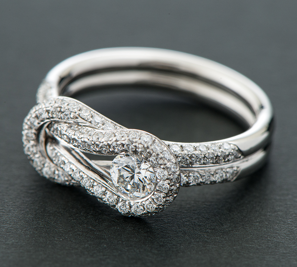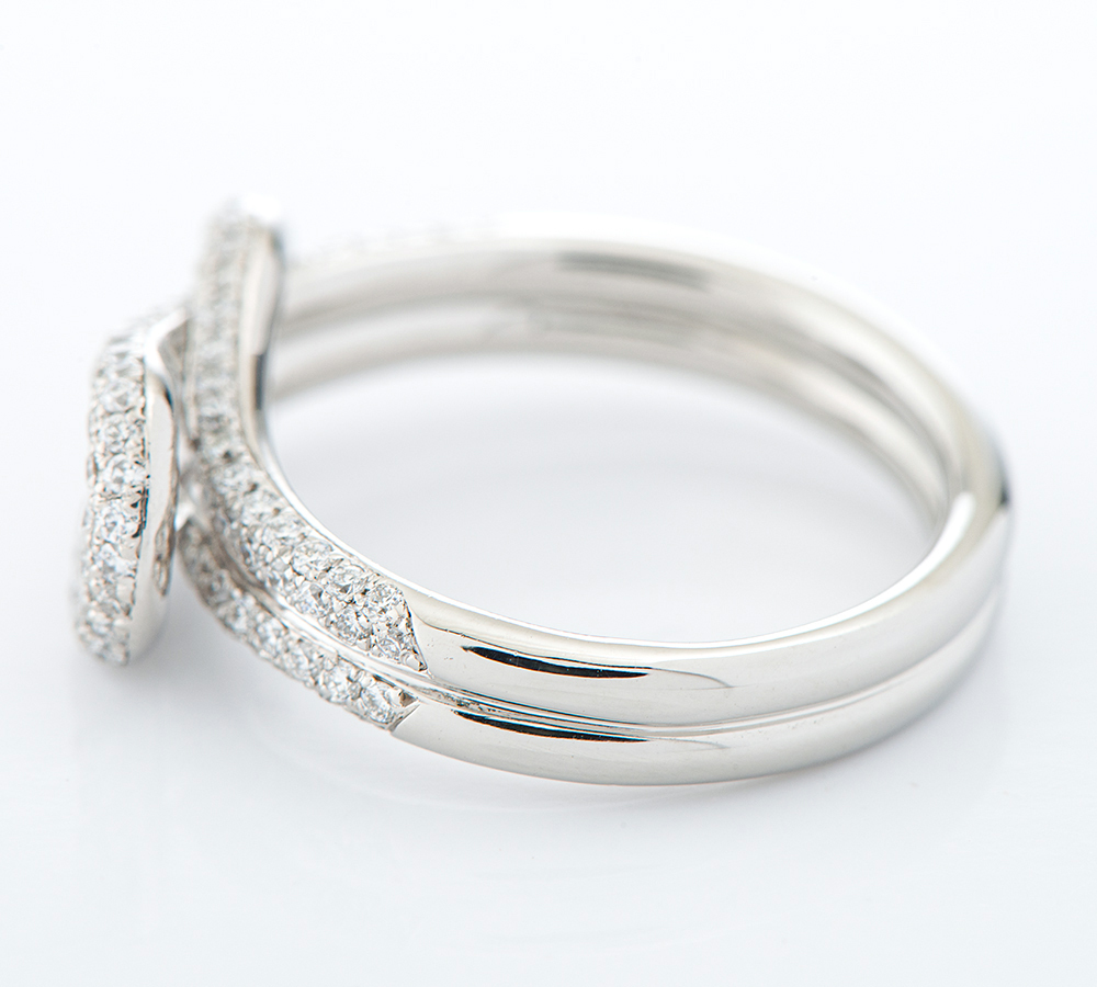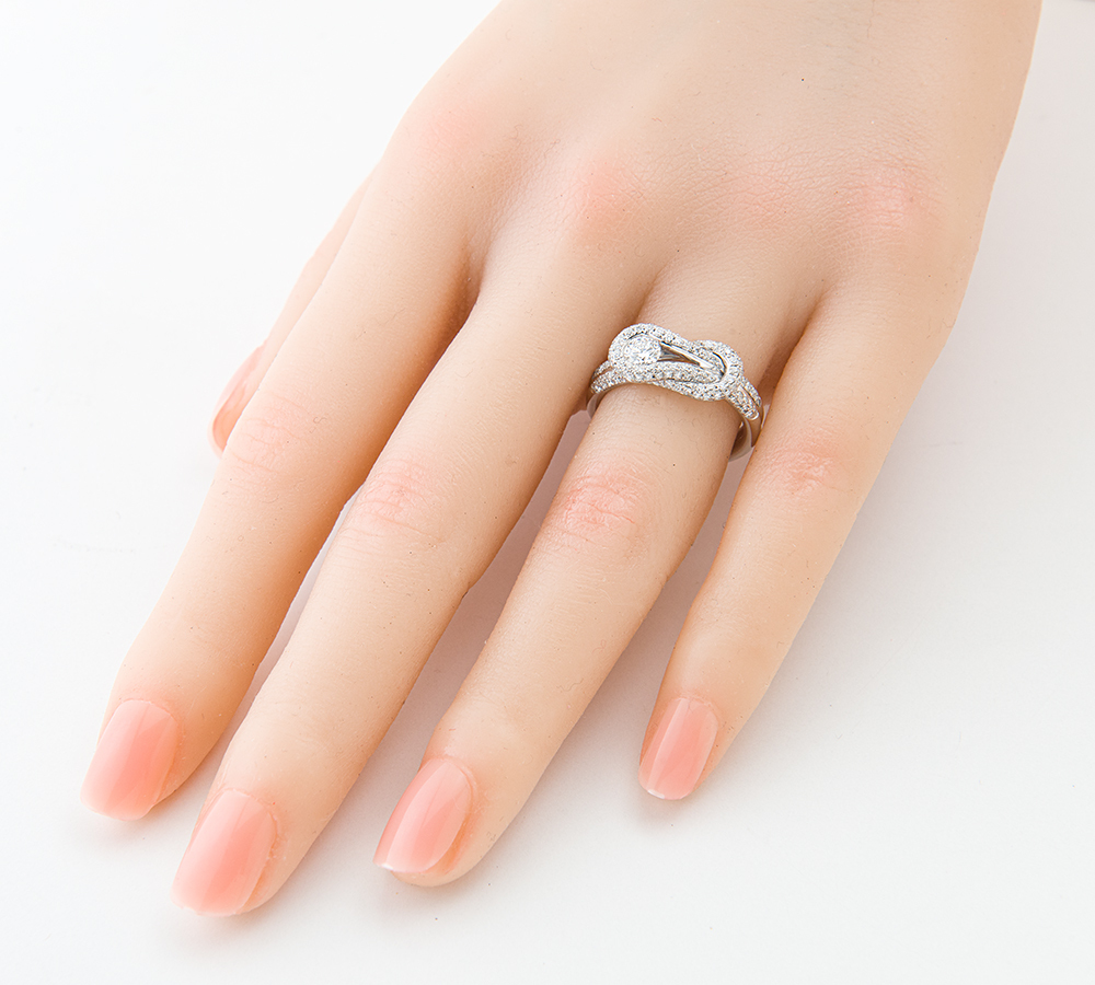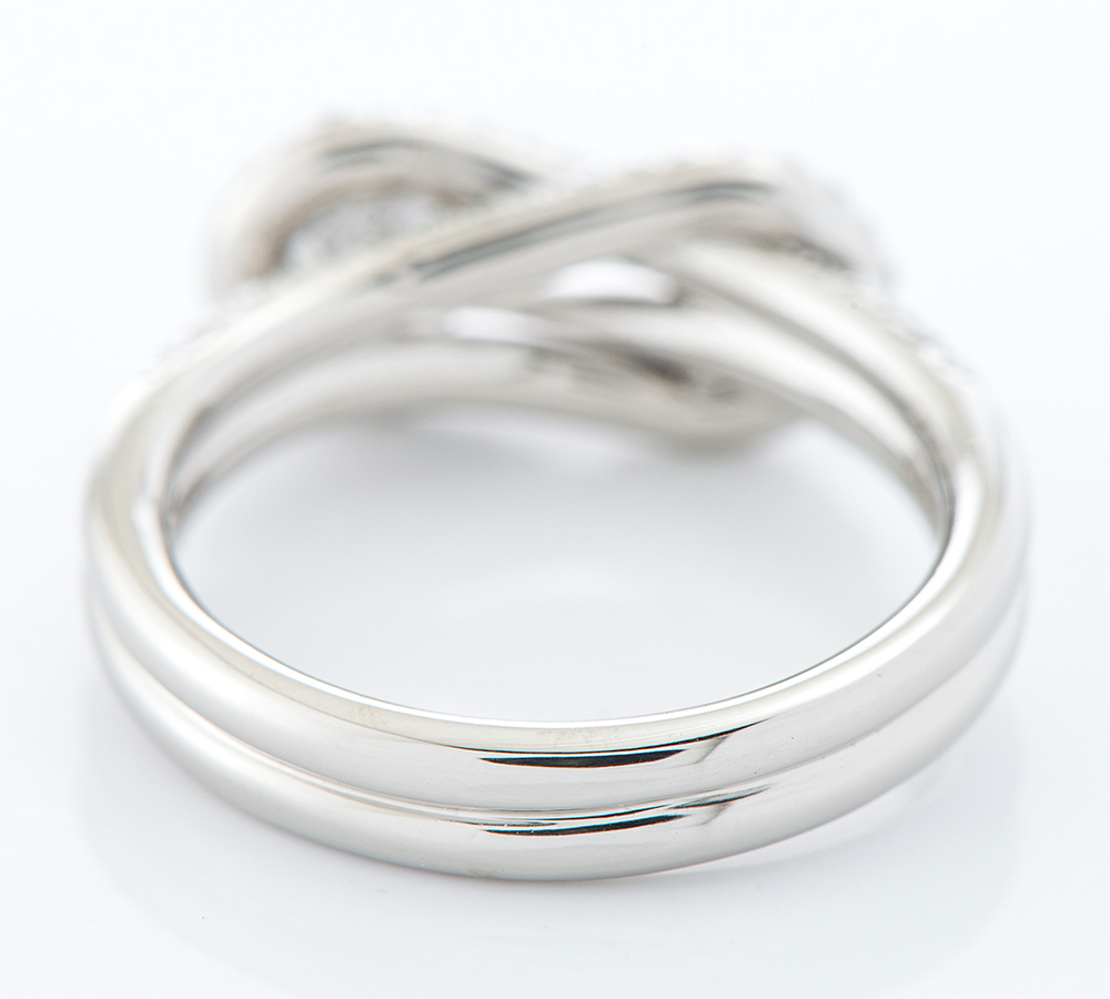 0.27ctの上質なダイヤモンドをセットしたフォーエバーマークの人気シリーズ エンコルディアのリングです。古代ギリシャより絆やパワーの象徴として伝わる「ヘラクレスノット」とい、外れにくい結び方をモチーフとしたデザイン。取り巻きのダイヤモンドは計0.62ctと重厚感があり、華やかな印象。「永遠に固く結ばれた絆」を象徴する結び目に、フォーエバーマークが誇るダイヤモンドが眩いほどの輝きを放ちます。