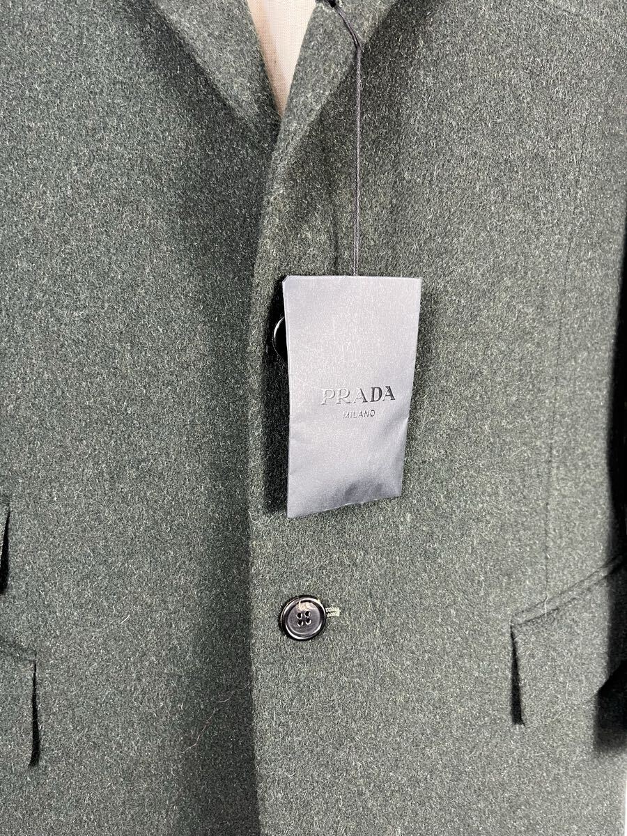 タグ付き、しつけ糸もついたままの状態のプラダのウールジャケットです。