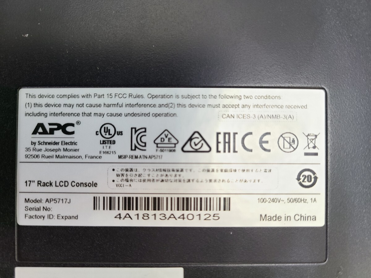 【ジャンク品】管2S30 APC 17"Rack LCD console AP5717J ラックコンソール 通電OK 動作未確認