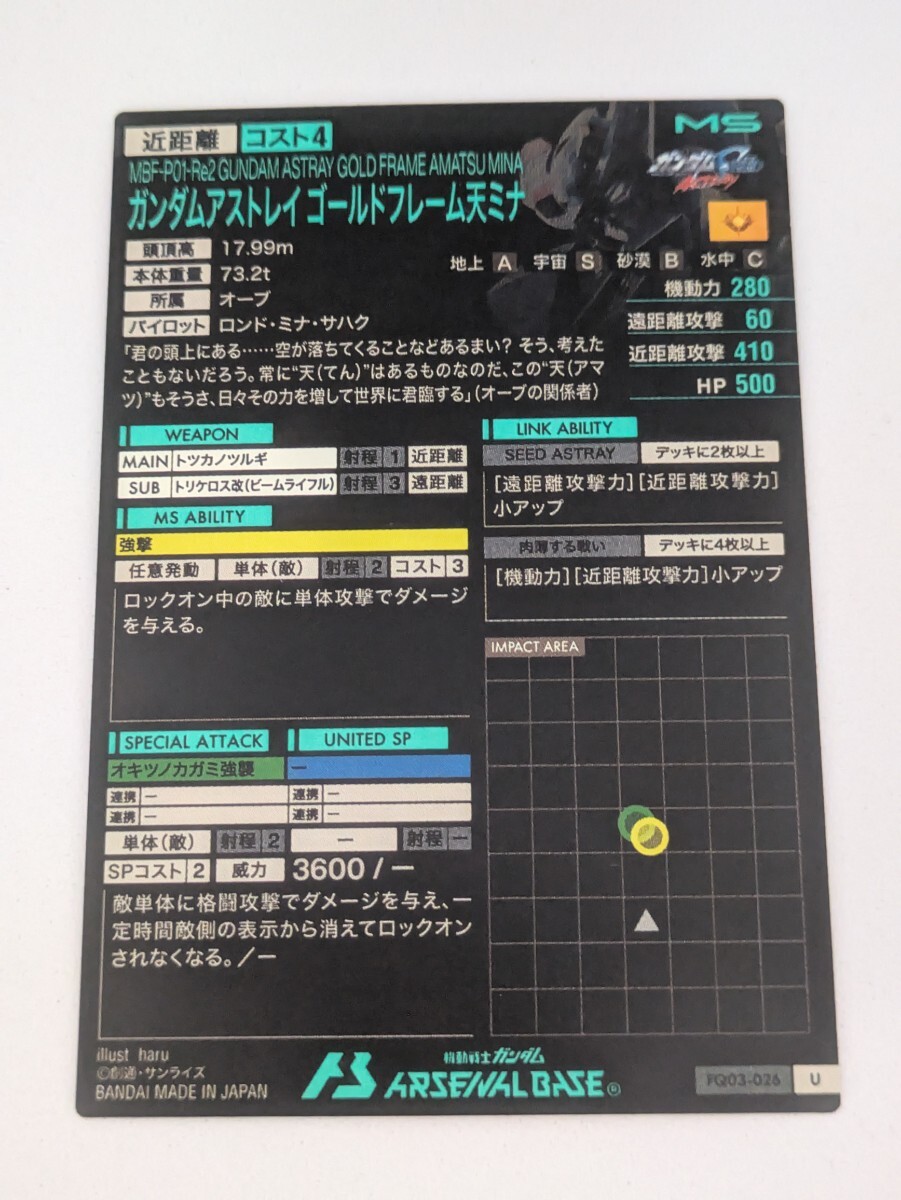 機動戦士ガンダムアーセナルベースよりカードの出品になります。