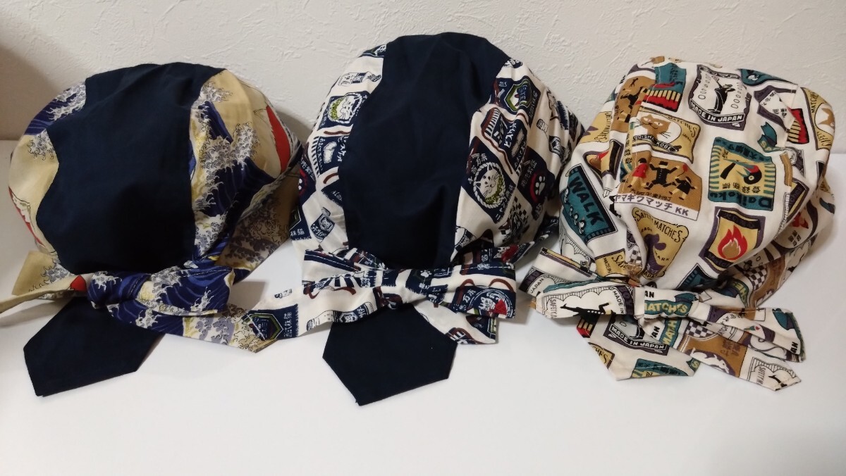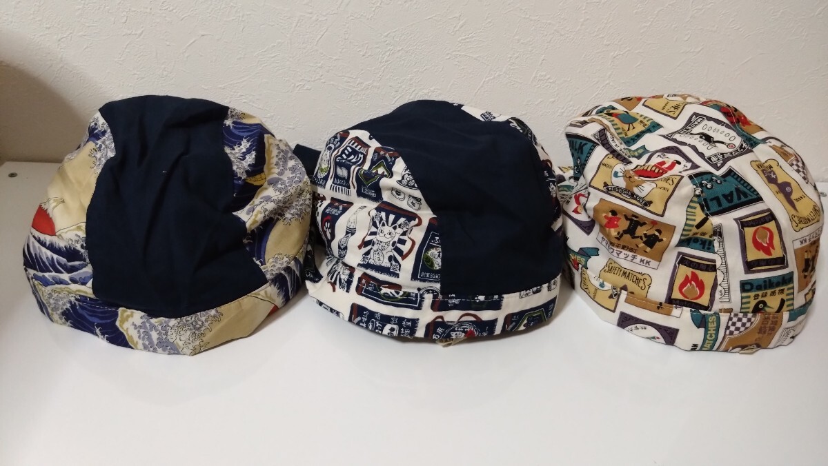 短★バンダナキャップ★ハンドメイド まとめ売り 和柄 マッチ 駄菓子 生成り 富士山 ベージュ