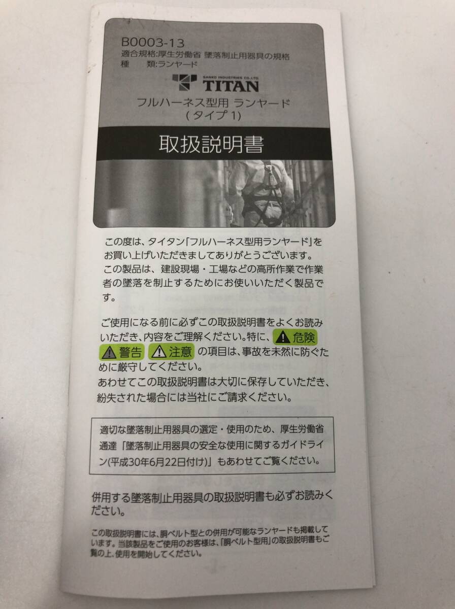 TITAN フルハーネス型用 ランヤード HL-ZCW 墜落制止用器具 EXゼロ 100kgまで H7